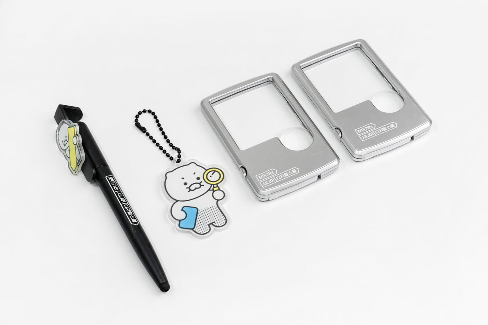 <구성품> - LED 돋보기 - 아크릴 볼펜 - 아크릴 키링