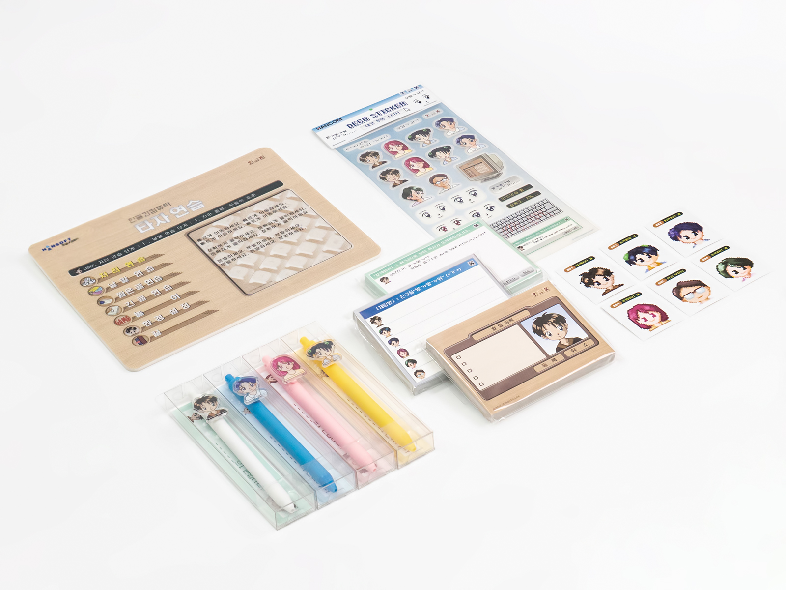 한글과컴퓨터의 아이덴티티였던 캐릭터를 담은 굿즈 세트는 10대 시절 익숙하게 접했던 기억을 자연스럽게 떠올리게 합니다. 회사원이 된 주 고객층이 자주 사용하는 마우스 패드, 아크릴 볼펜, 체크리스트 등을 굿즈로 제작해서 캐릭터의 매력을 다시 경험할 수 있도록 구성되었습니다.