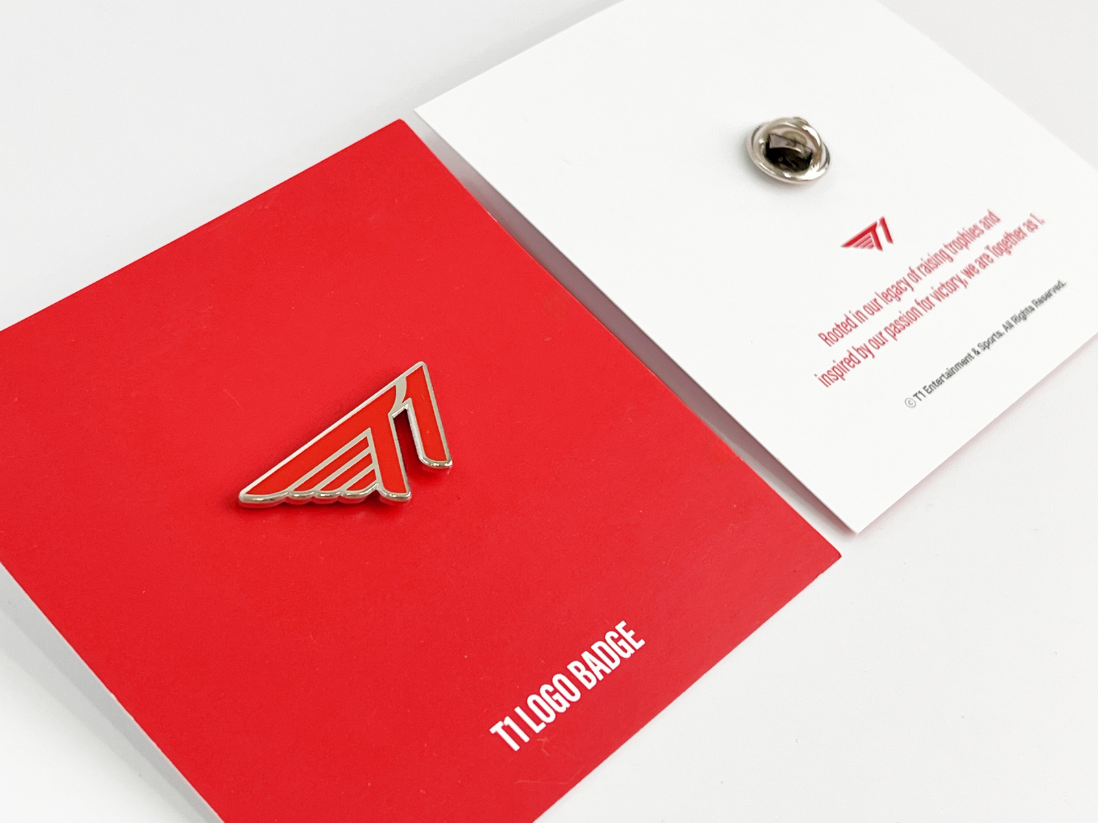 티원 로고를 활용하여 에나멜 금속 뱃지를 제작하였습니다