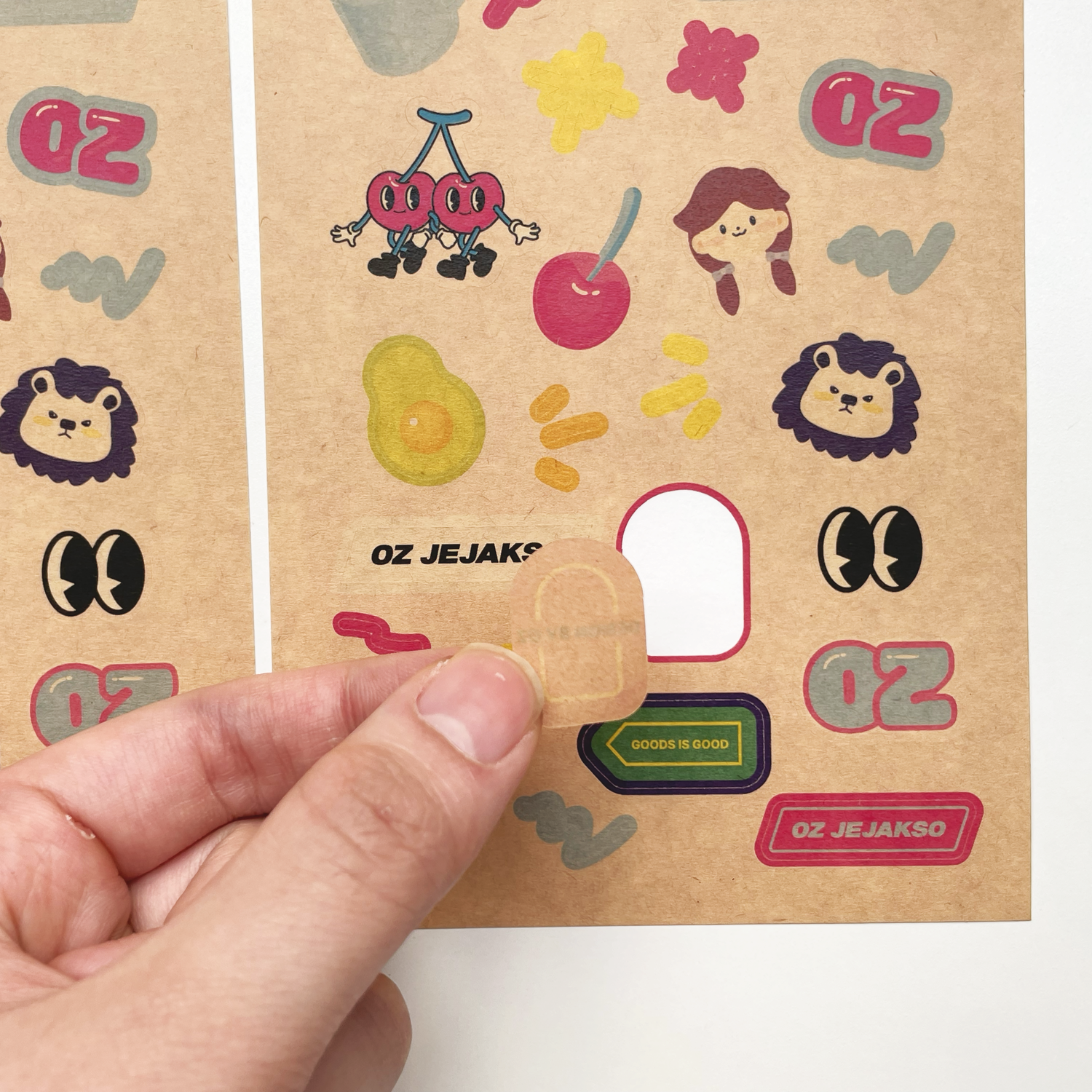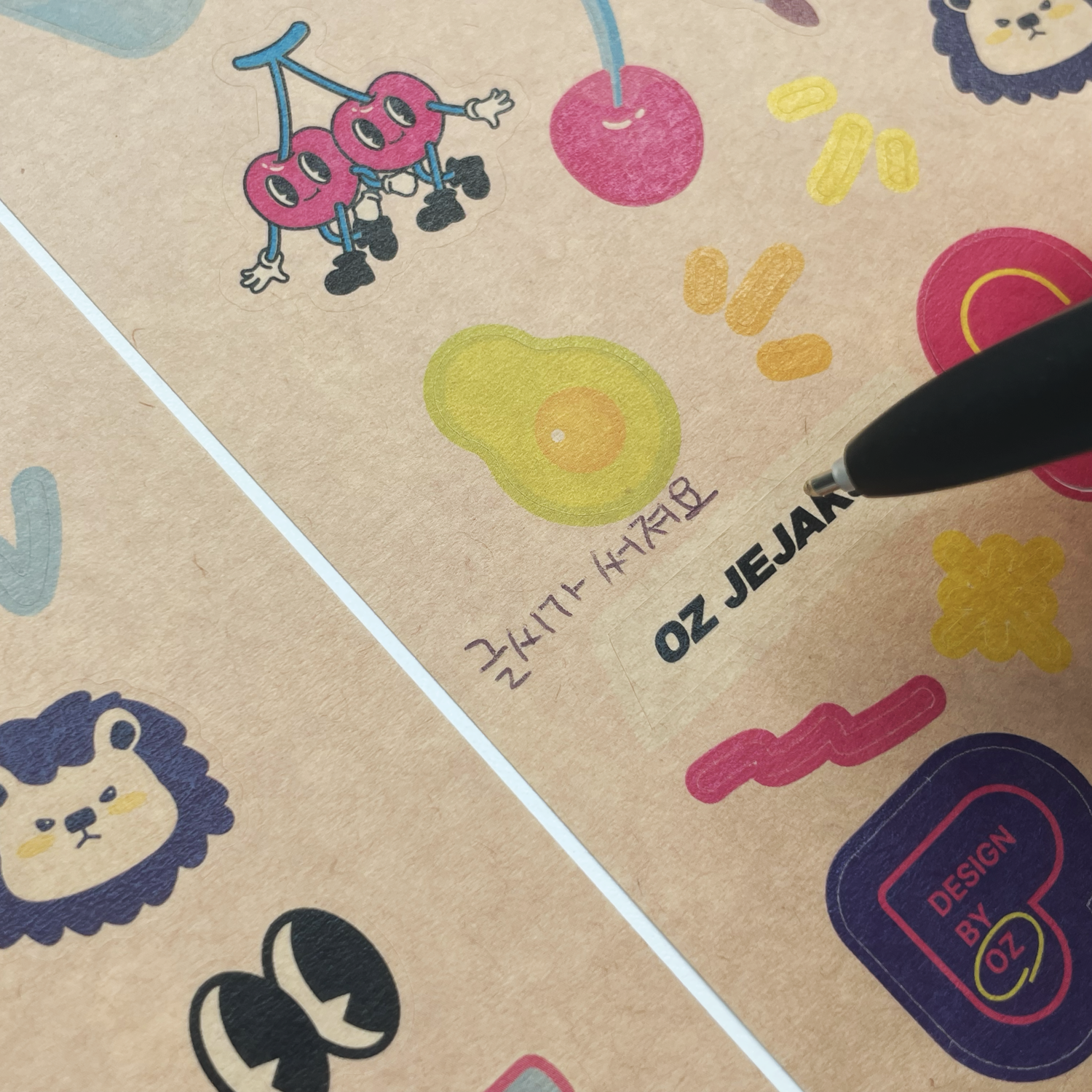 스티커 뒷면은 크라프트지 색상, 후지는 흰색이에요