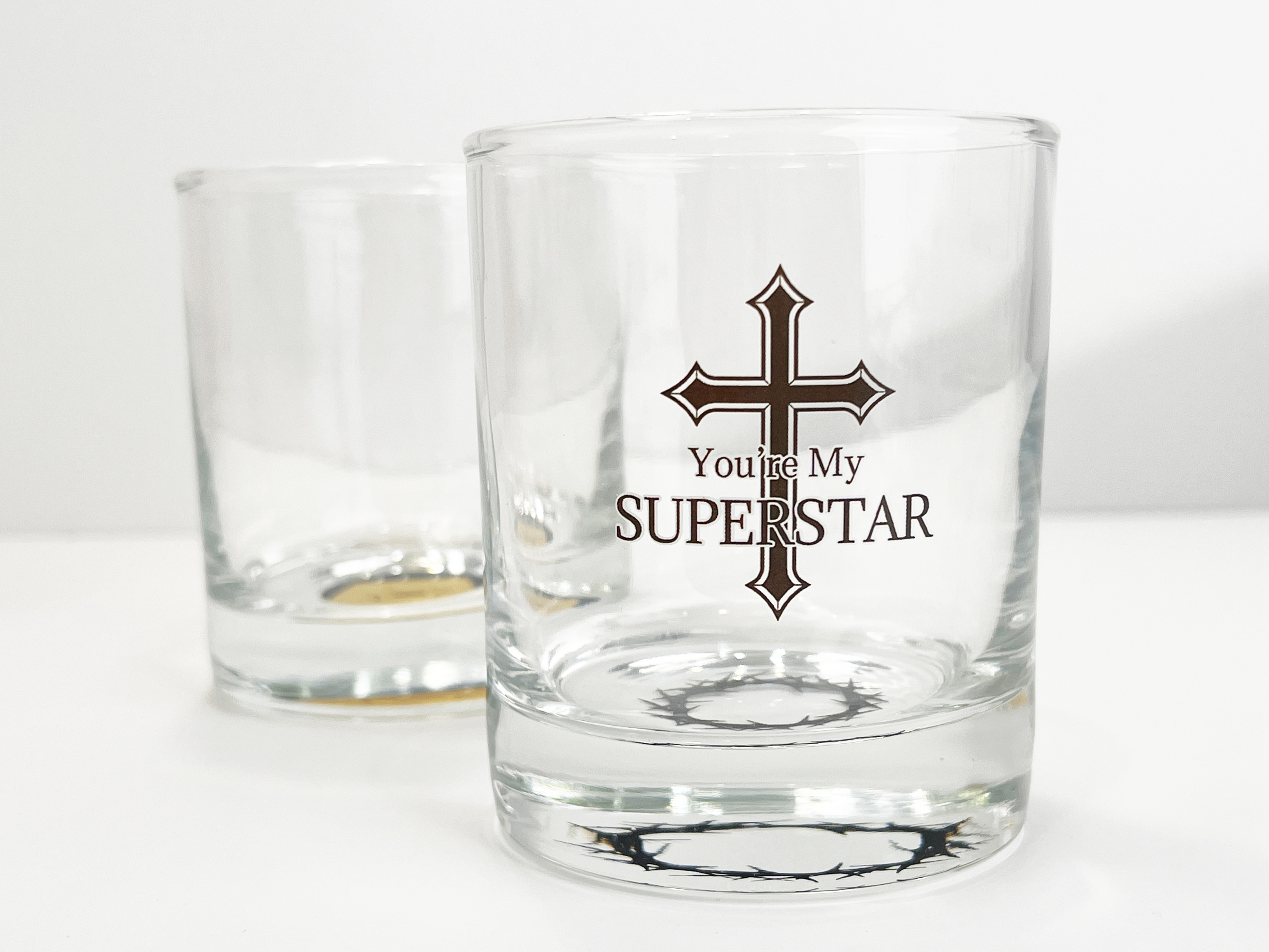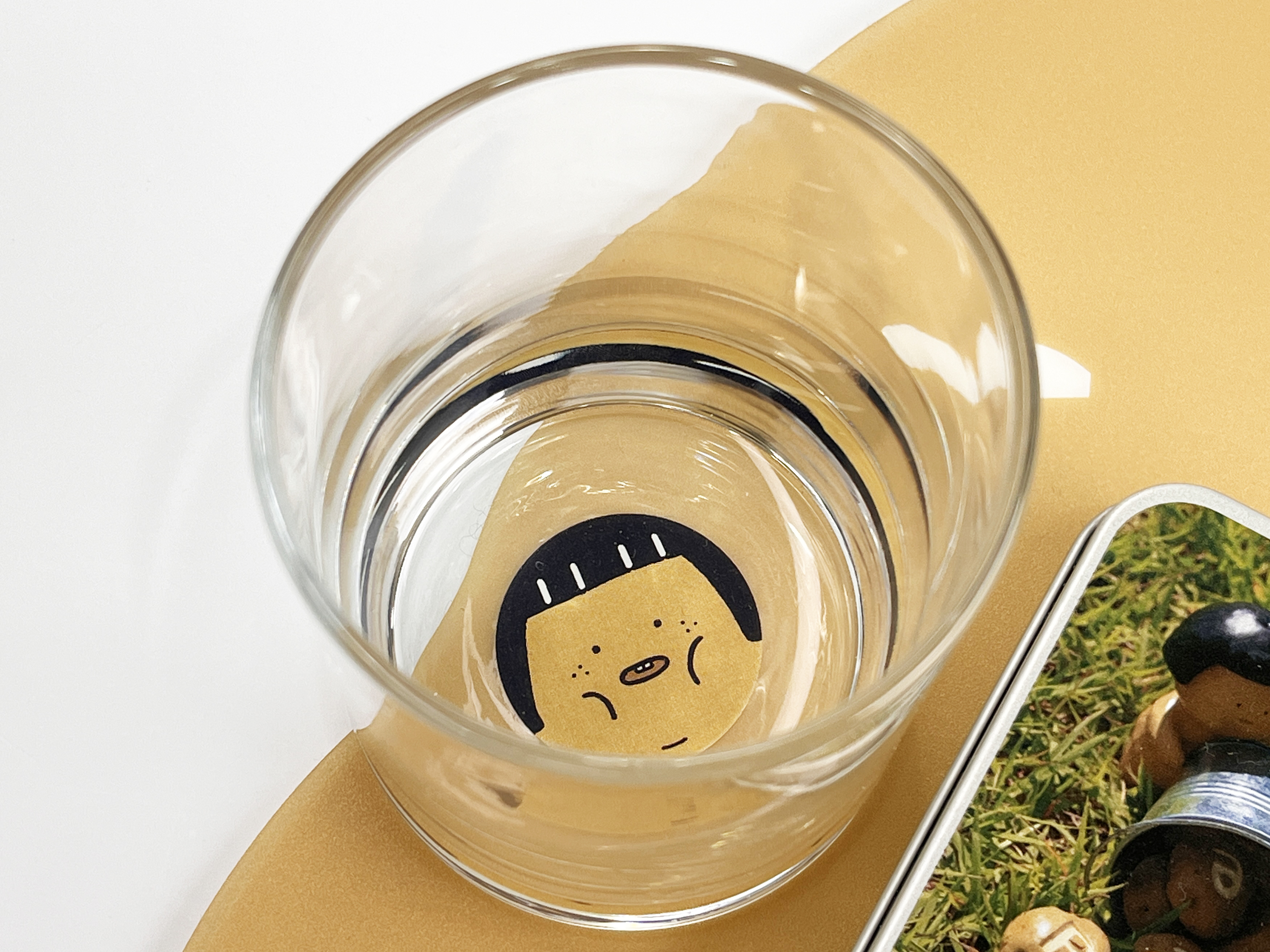 얼음과 위스키가 떠오르는 온더락 잔의 전면과 하단에 원하는 디자인을 넣을 수 있어요.