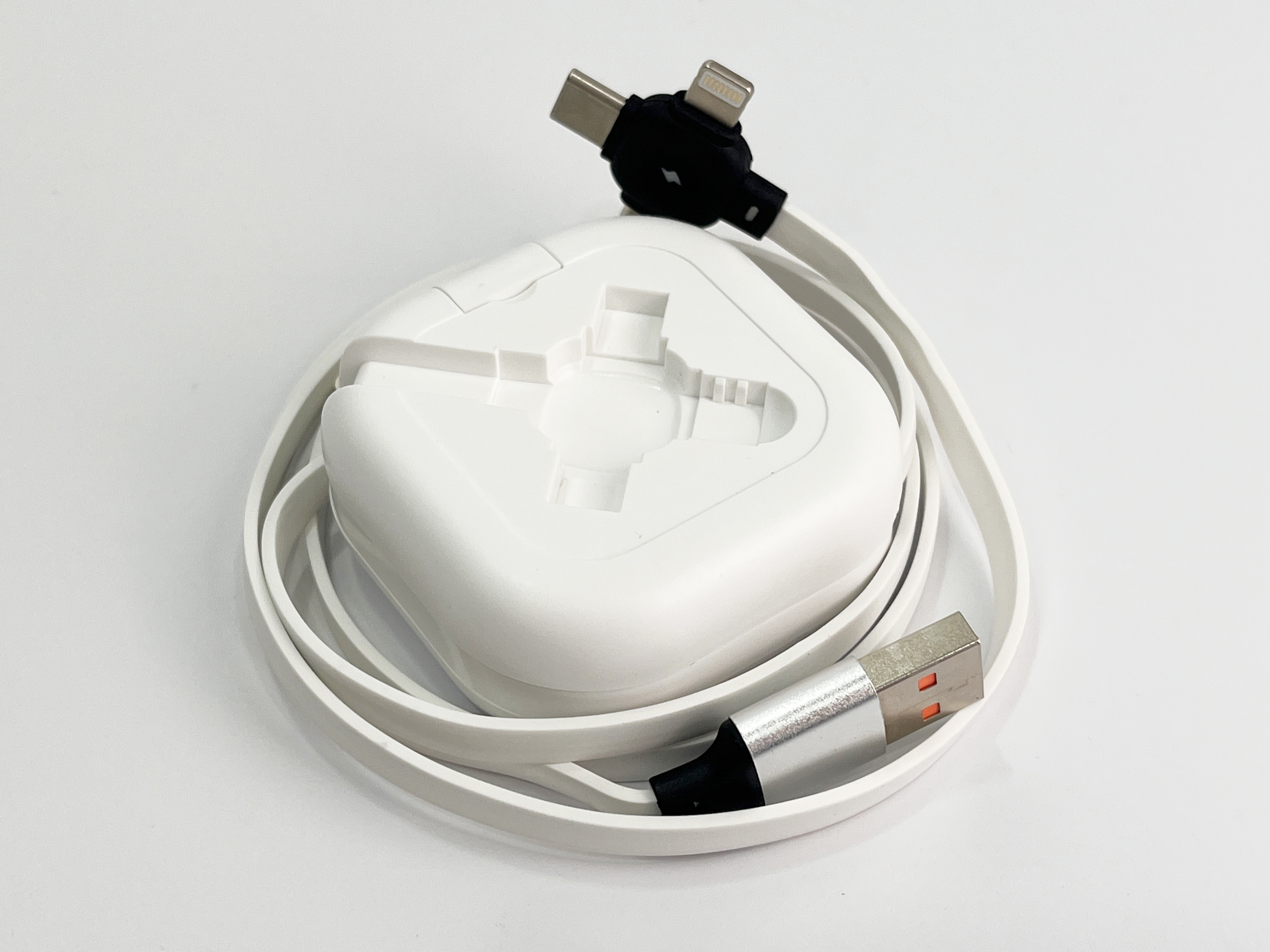 줄자처럼 케이블 선을 당겼다 놓으면 말려들어가는 시스템으로 손쉽게 수납이 가능해요