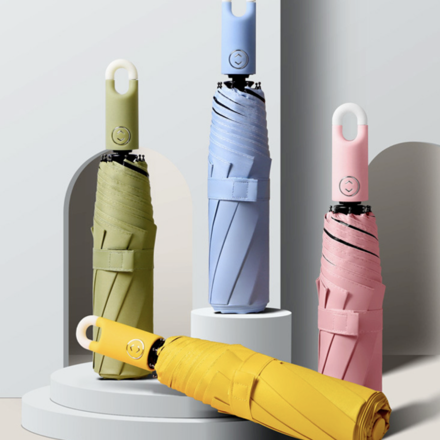 창의적 고리 디자인으로 휴대성을 높인 자외선 차단 3단 양우산이에요
