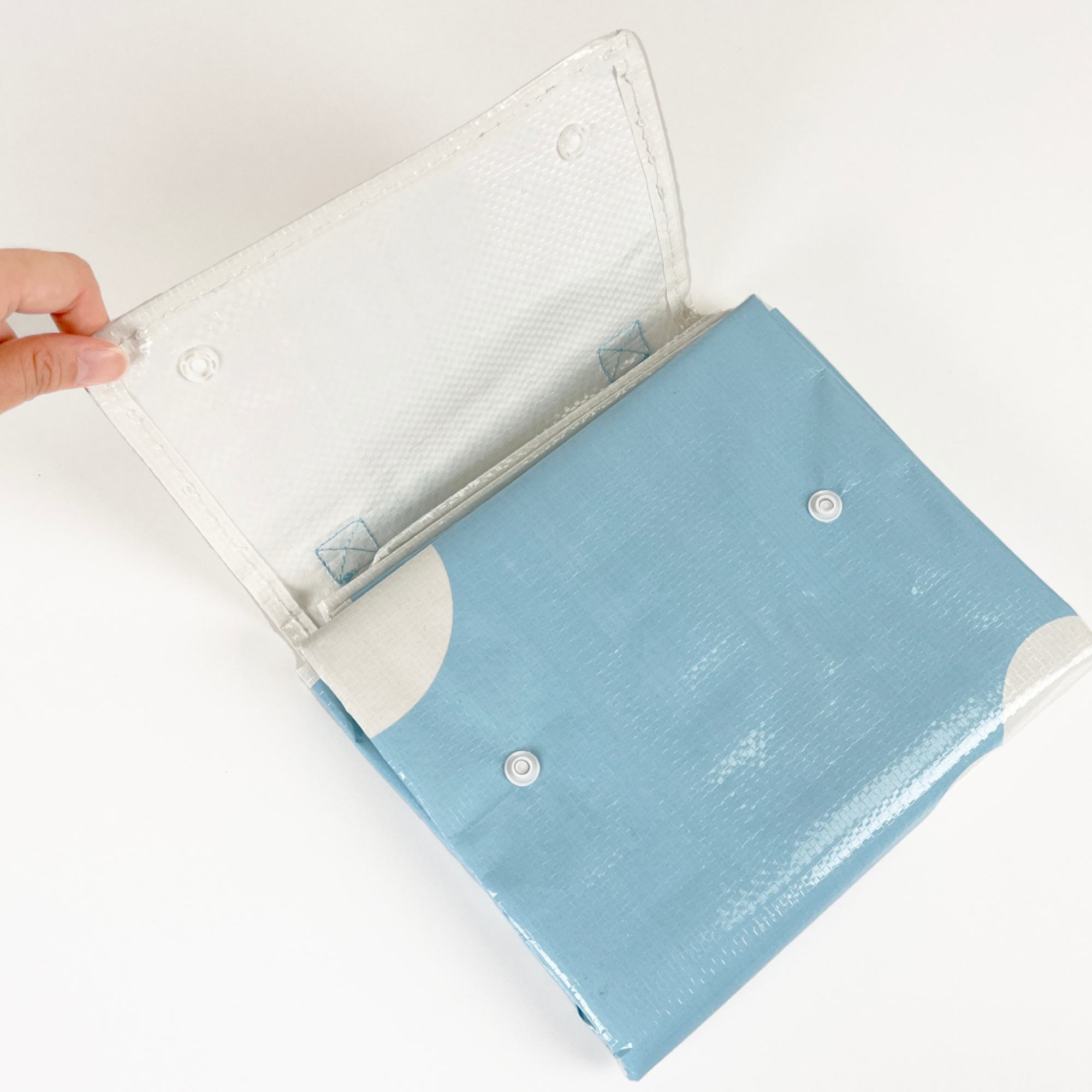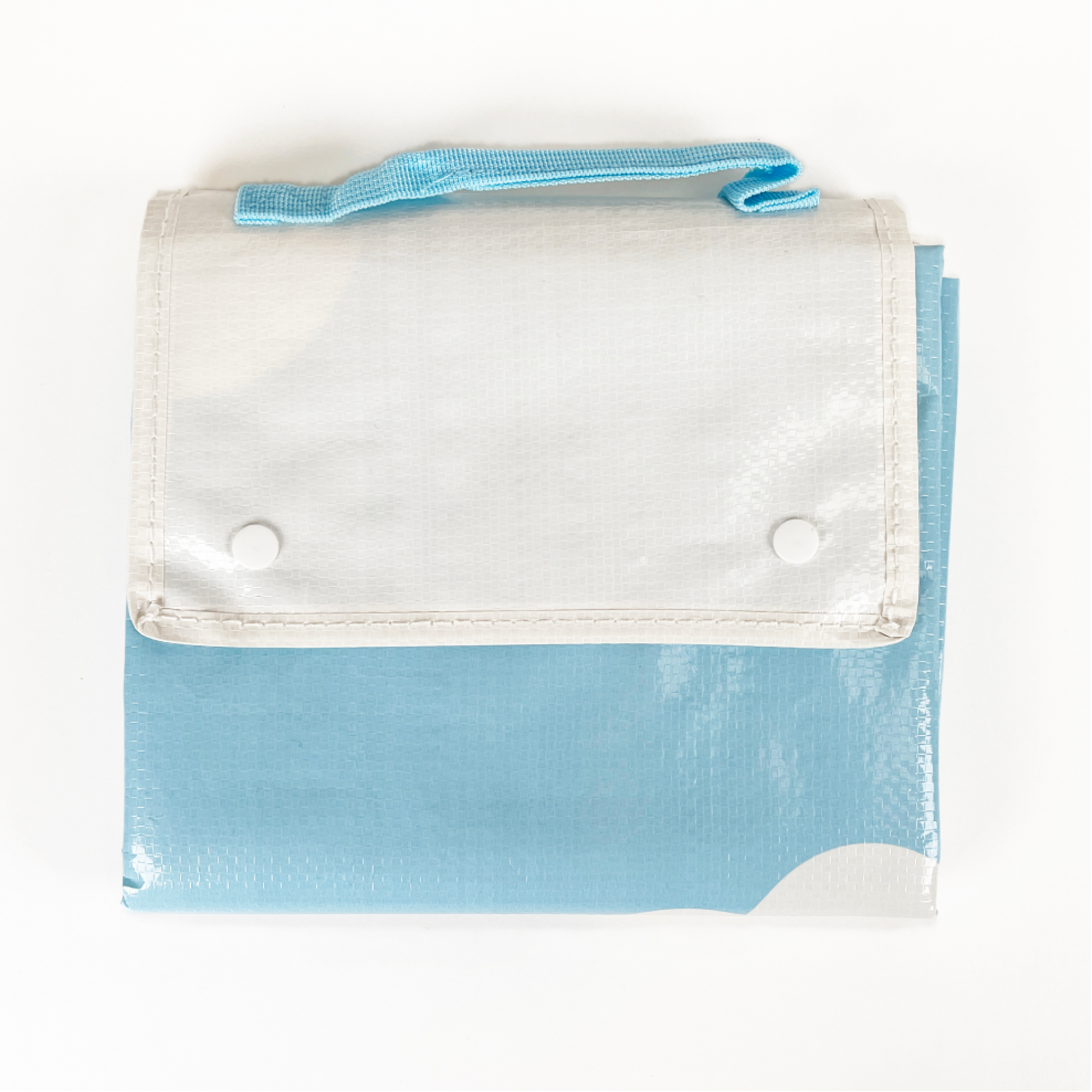 단추 똑딱이와 손잡이가 있어 휴대가 용이한 타포린 매트에요 방수가 되는 재질로 활용도가 높아요