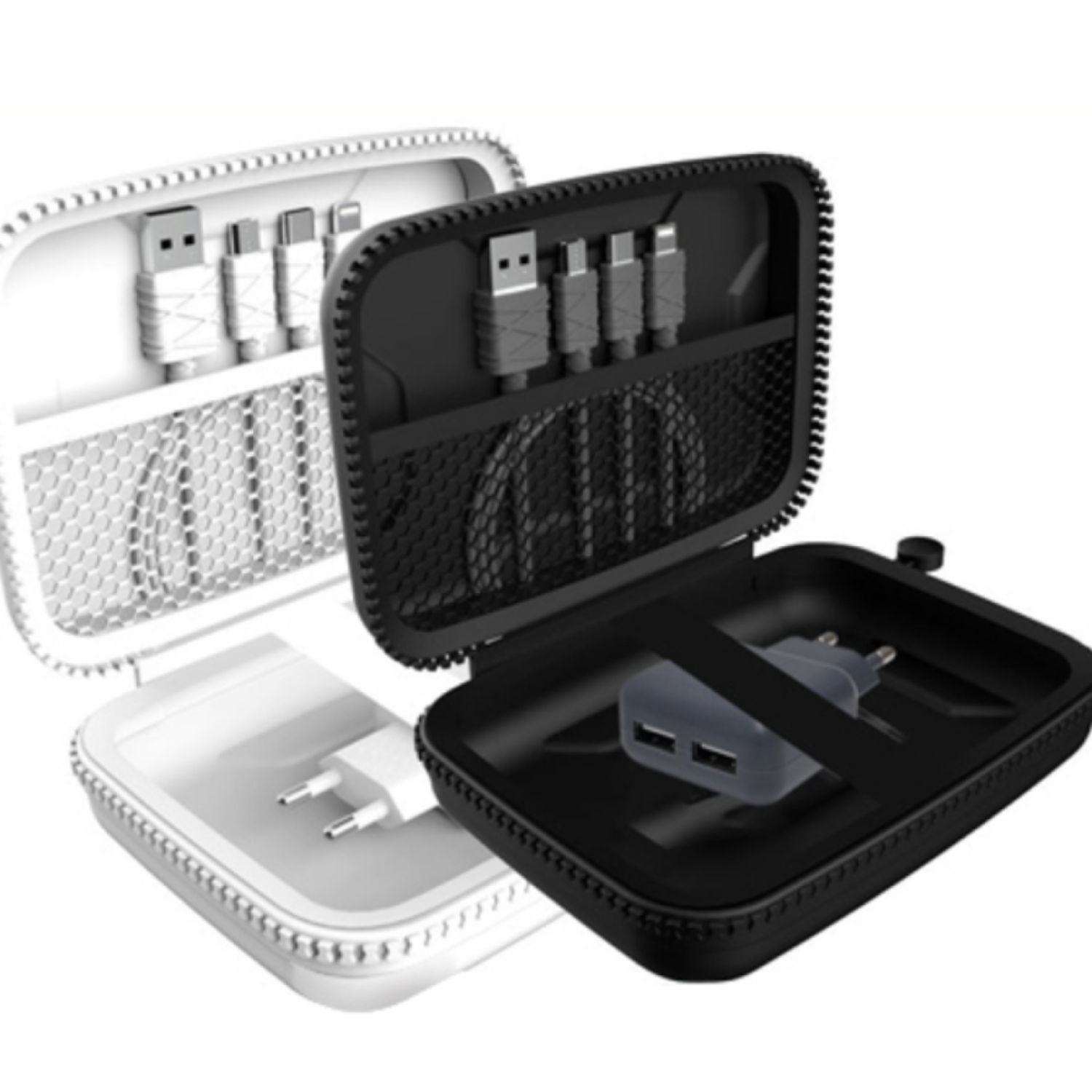 지저분한 케이블과 충전기, 가방에 간편하게 파우치를 쏙 넣어 다닐 수 있는 여행용 충전기 세트에요