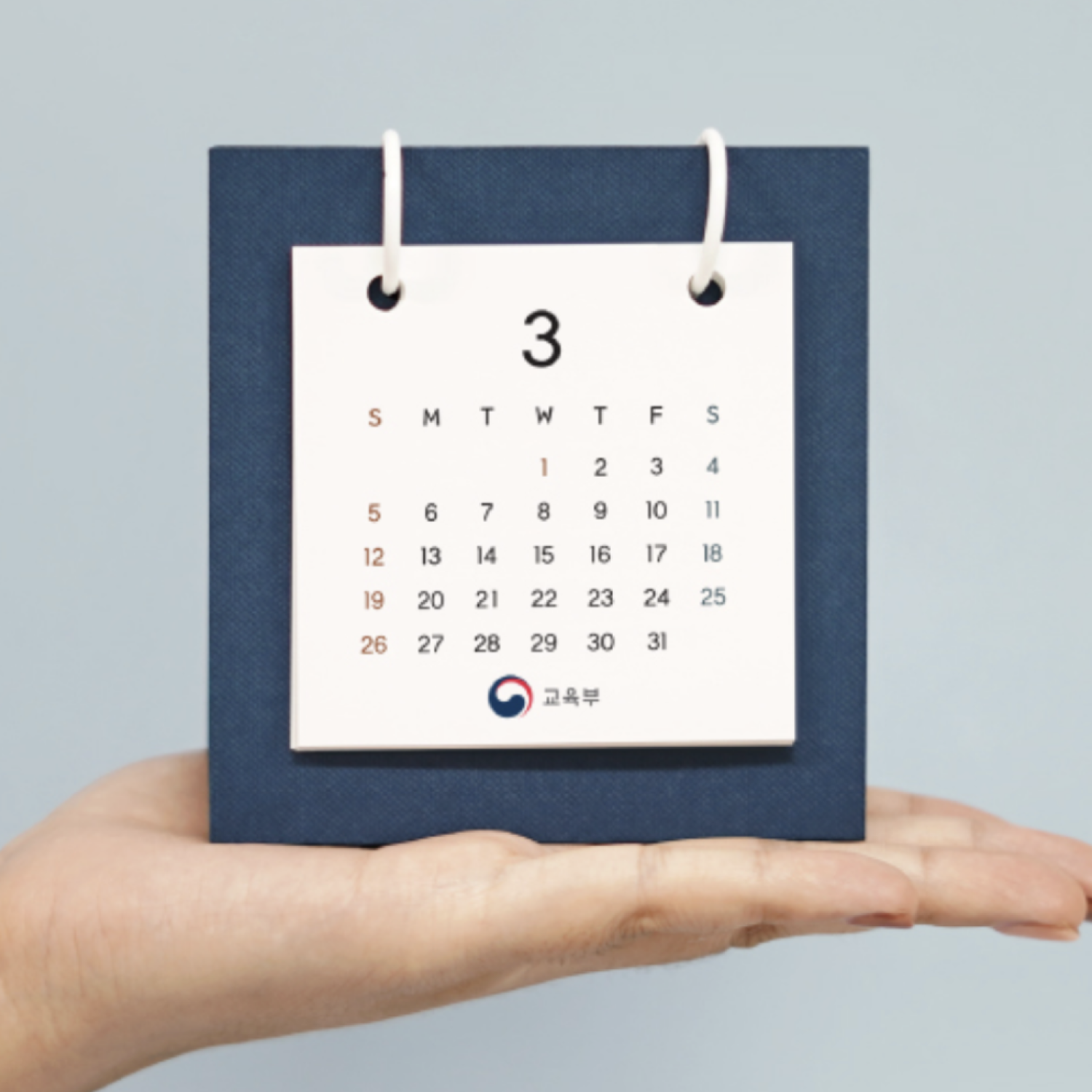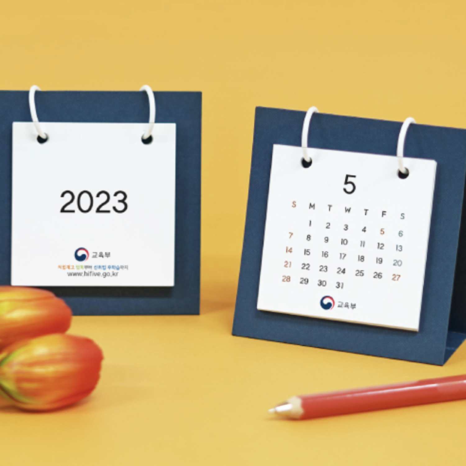 패브릭 느낌의 삼각대와 깔끔한 화이트 링으로 구성된 컴팩트한 사이즈로 자리차지가 적은 미니 캘린더에요
