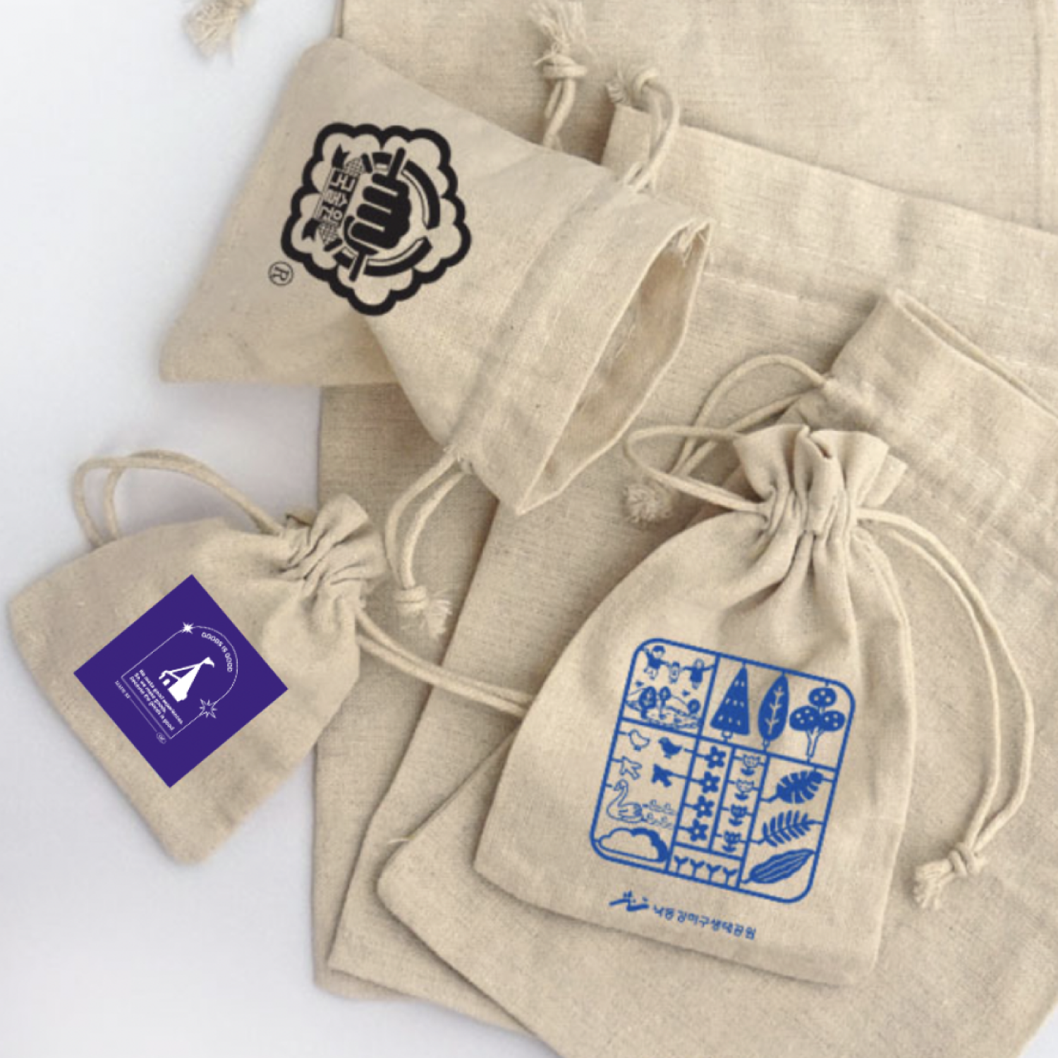 무지 린넨 코튼 100% 스트링 파우치