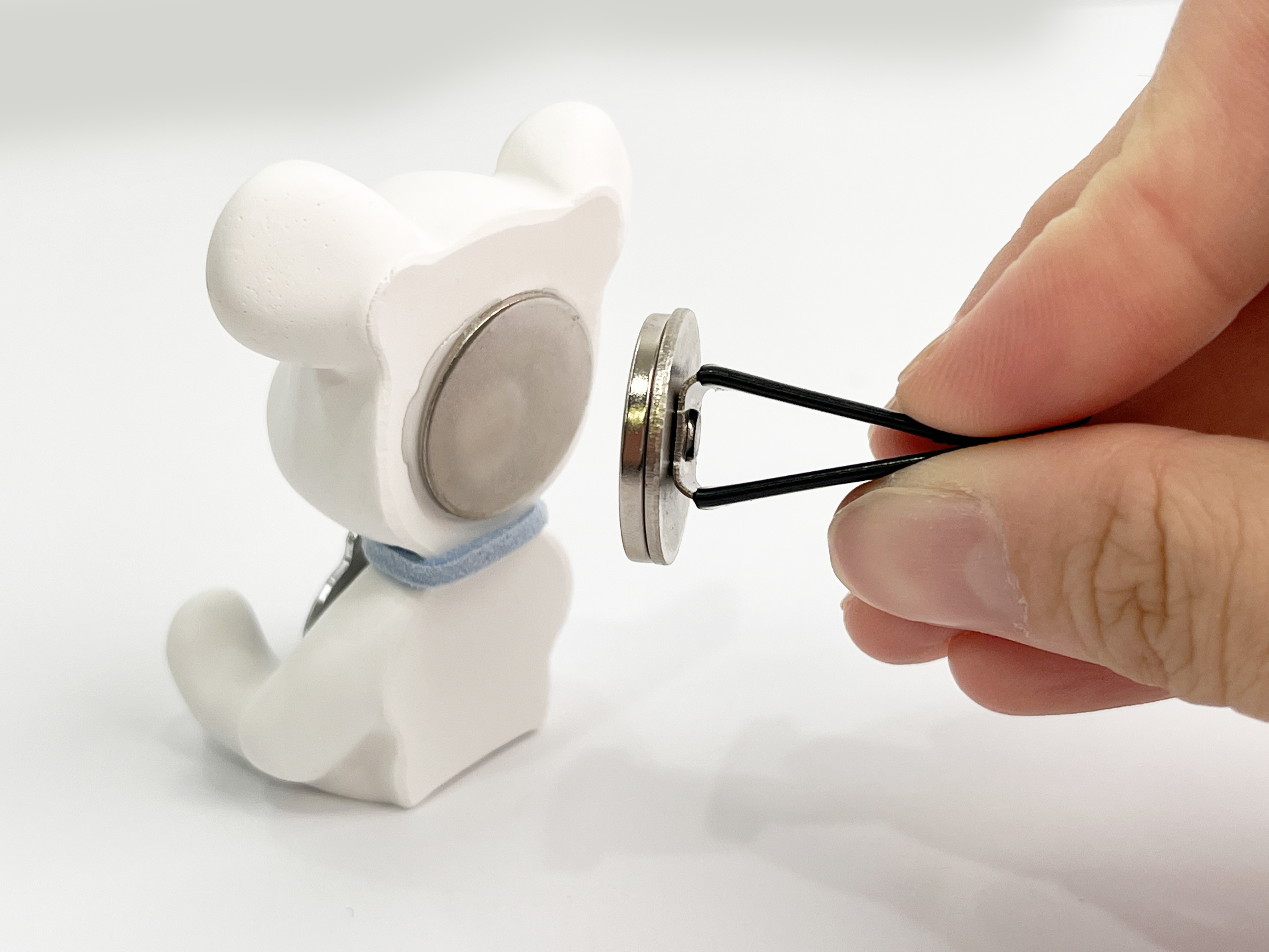 차량용 자석집게가 있어 집게를 차에 고정 후 곰돌이를 부착시키면 끝!