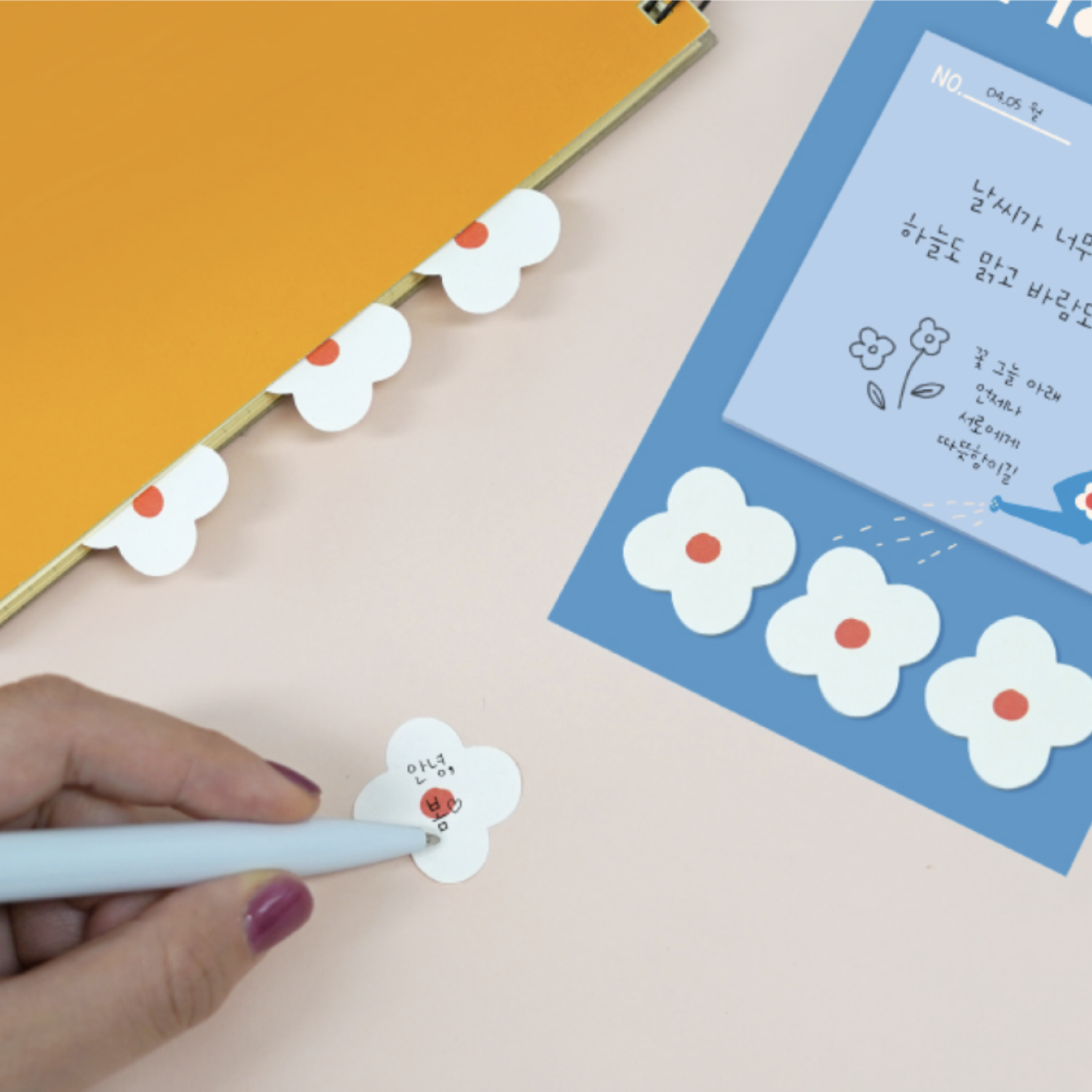 기본형태인 포스트잇에 귀여운 일러스트와 꽃잎 모양으로 사용이 가능해 포인트가 되는 포스트잇이에요