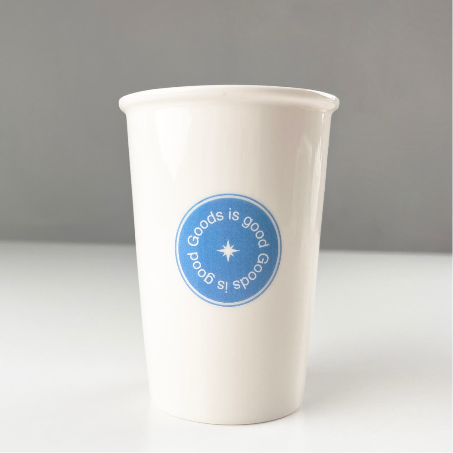 전통적인 소재인 도자기로 만든 텀블러 모양 컵이에요 음료를 안전하게 마실 수 있어요
