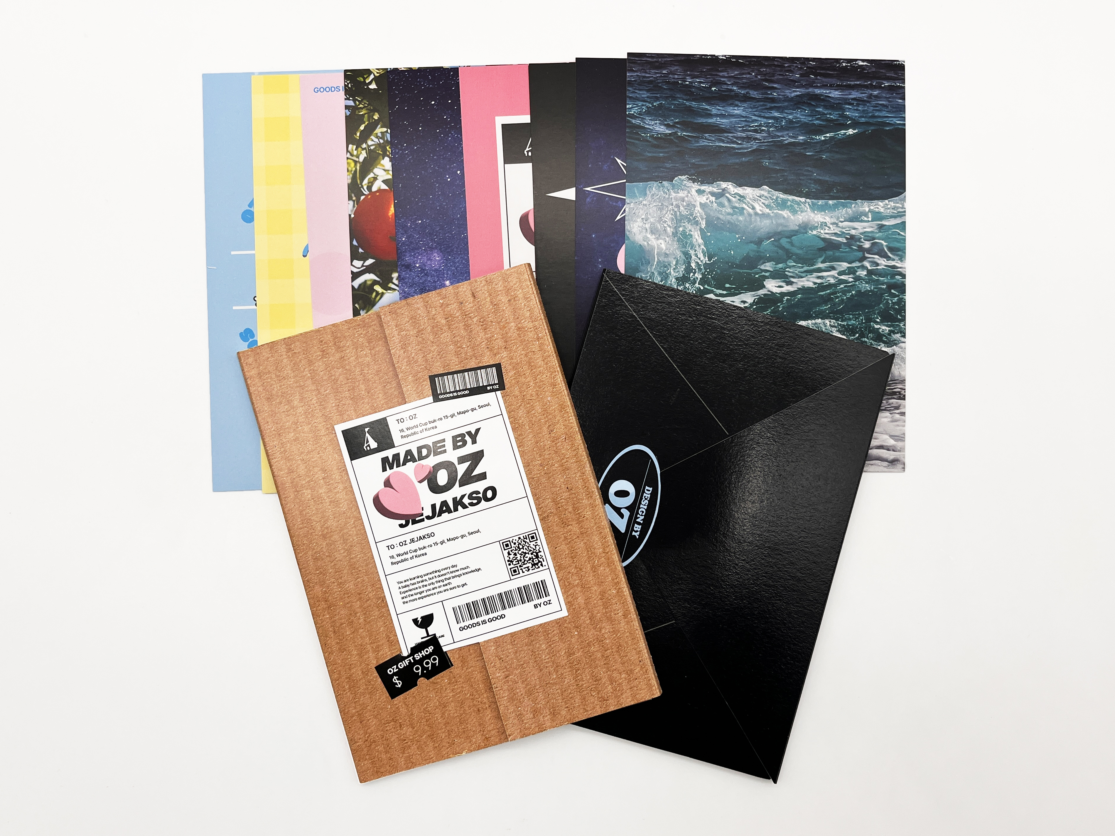 택배상자의 스티커처럼 엽서북 뚜껑을 디자인 할수도 있어요