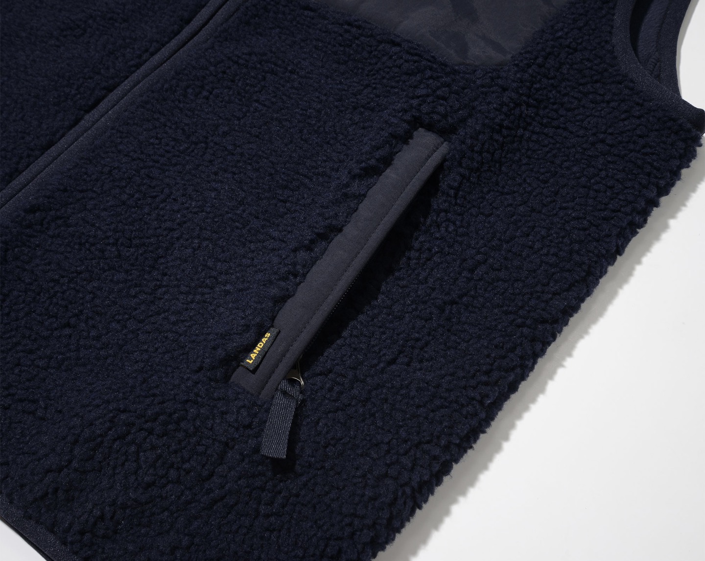 다양한 포켓과 꼼꼼한 마감으로 편하게 착용할 수 있는 렌더스 양털 플리스 조끼에요