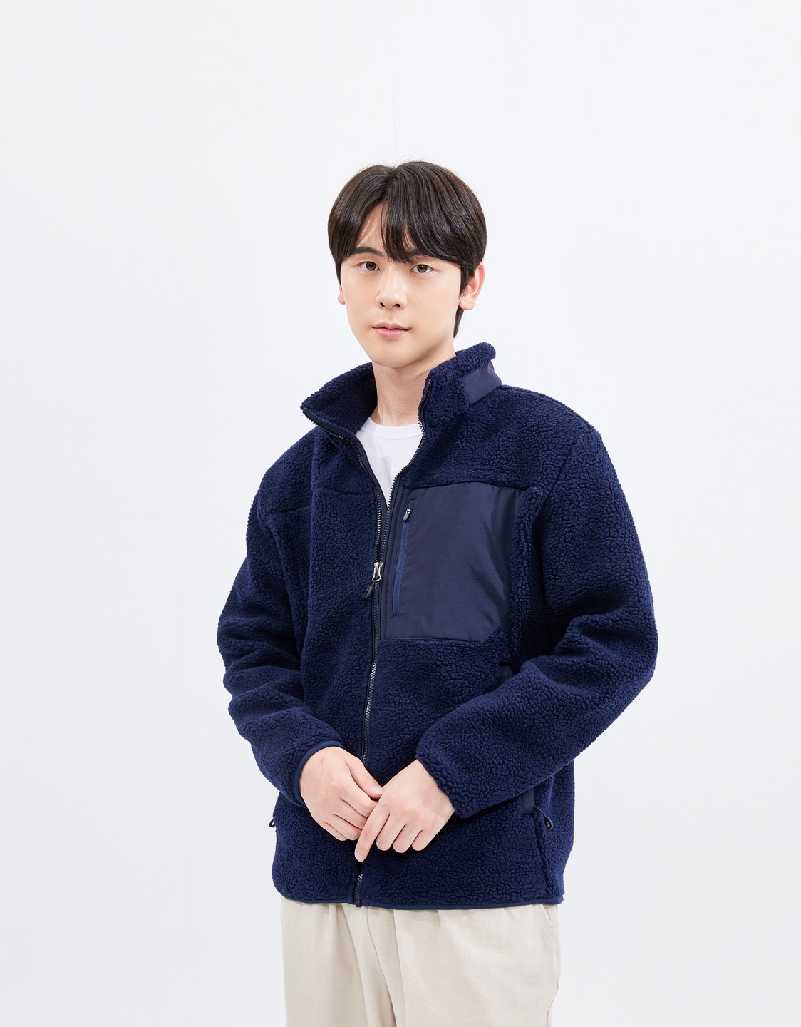 보온성이 우수한 양털 FREECE로 제작되었으며, 주머니에 포인트 컬러가 배치되어있어 편리함과 디자인을 갖추었습니다.