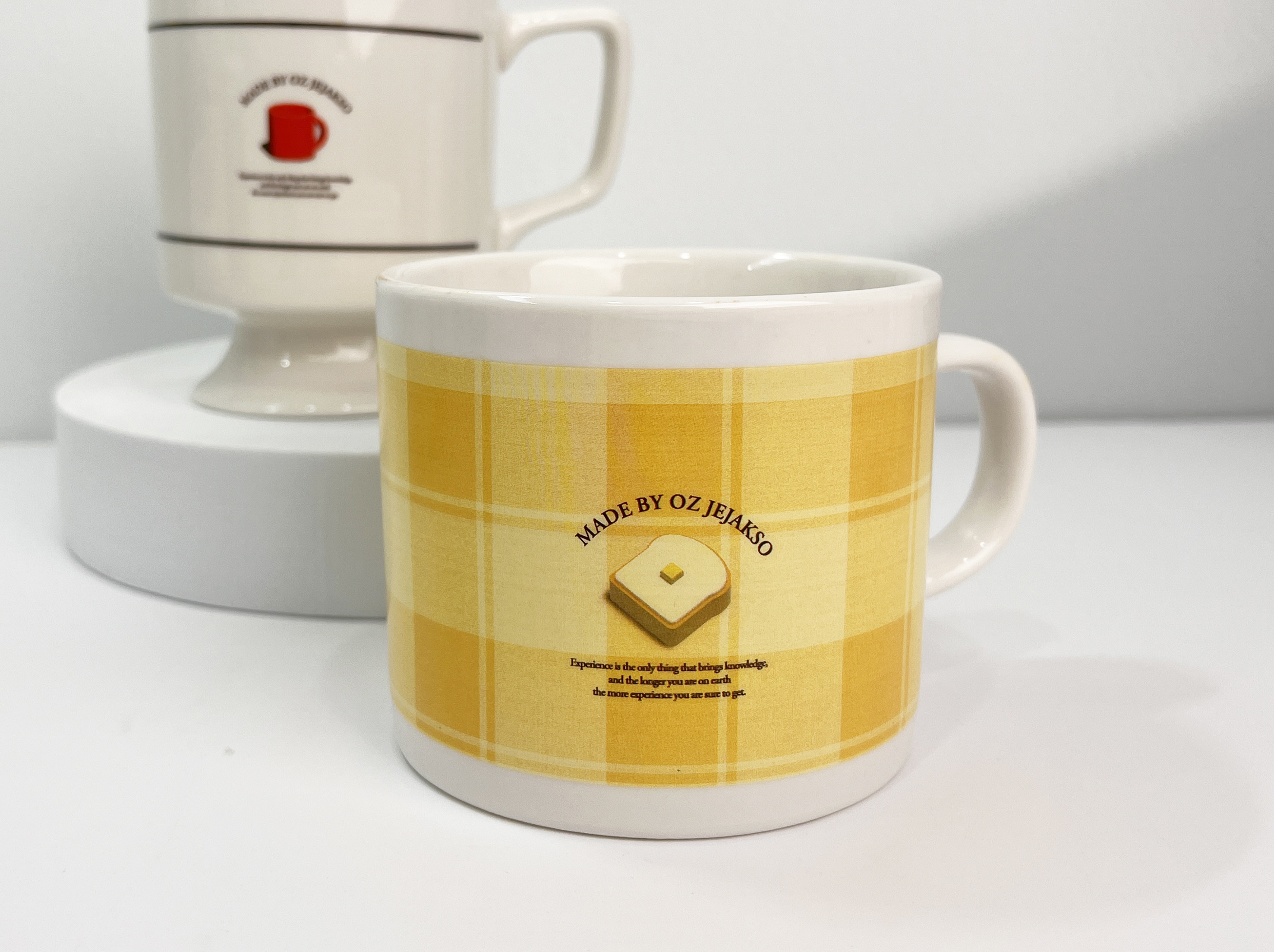 가장 많이 사용하는 대중적인 사이즈 화이트 10온스 머그컵이에요