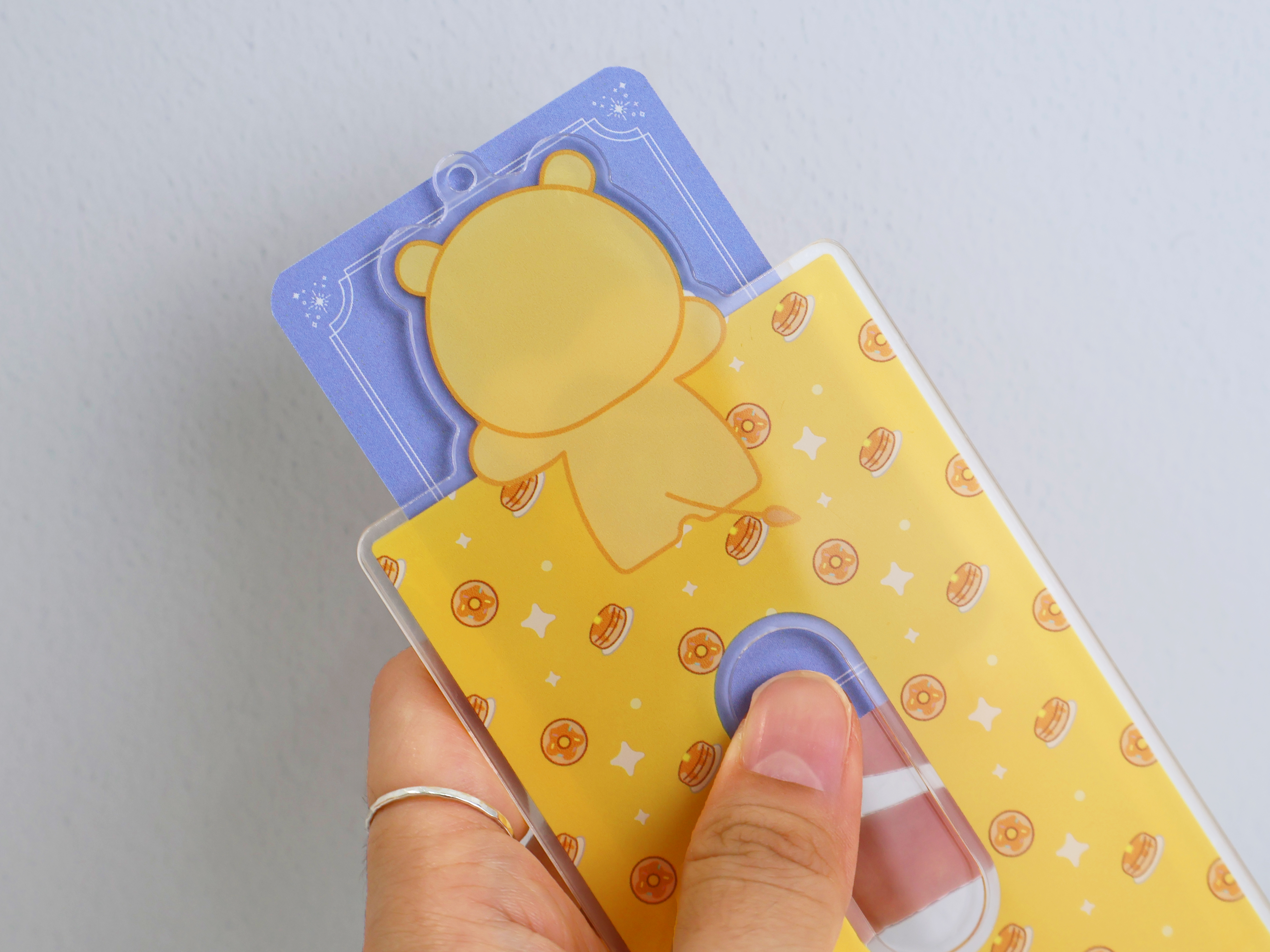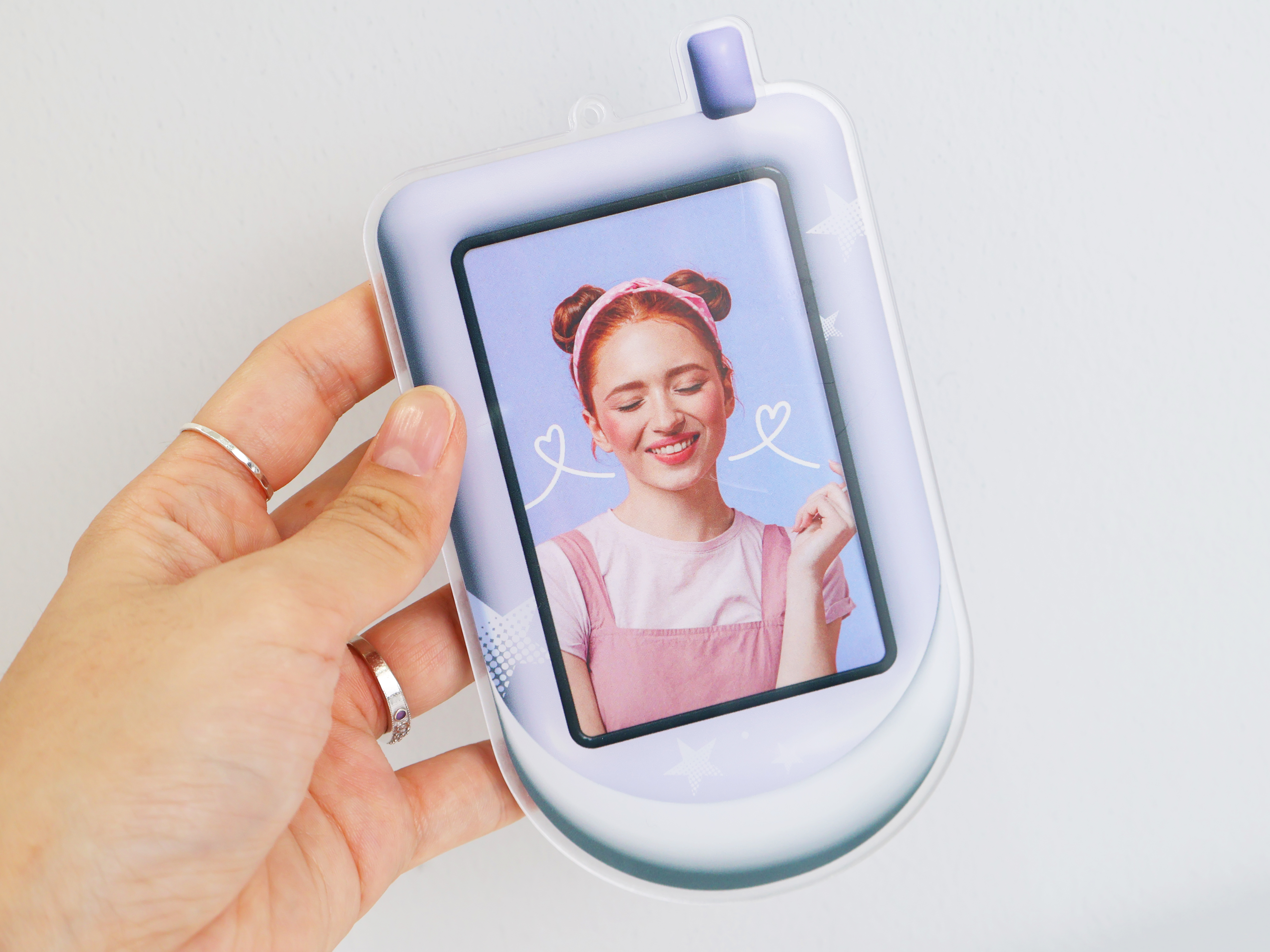 앞면과 뒷면 사이로 포토카드나 교통카드를 넣어 안전하게 보관하면서 자랑할 수 있어요