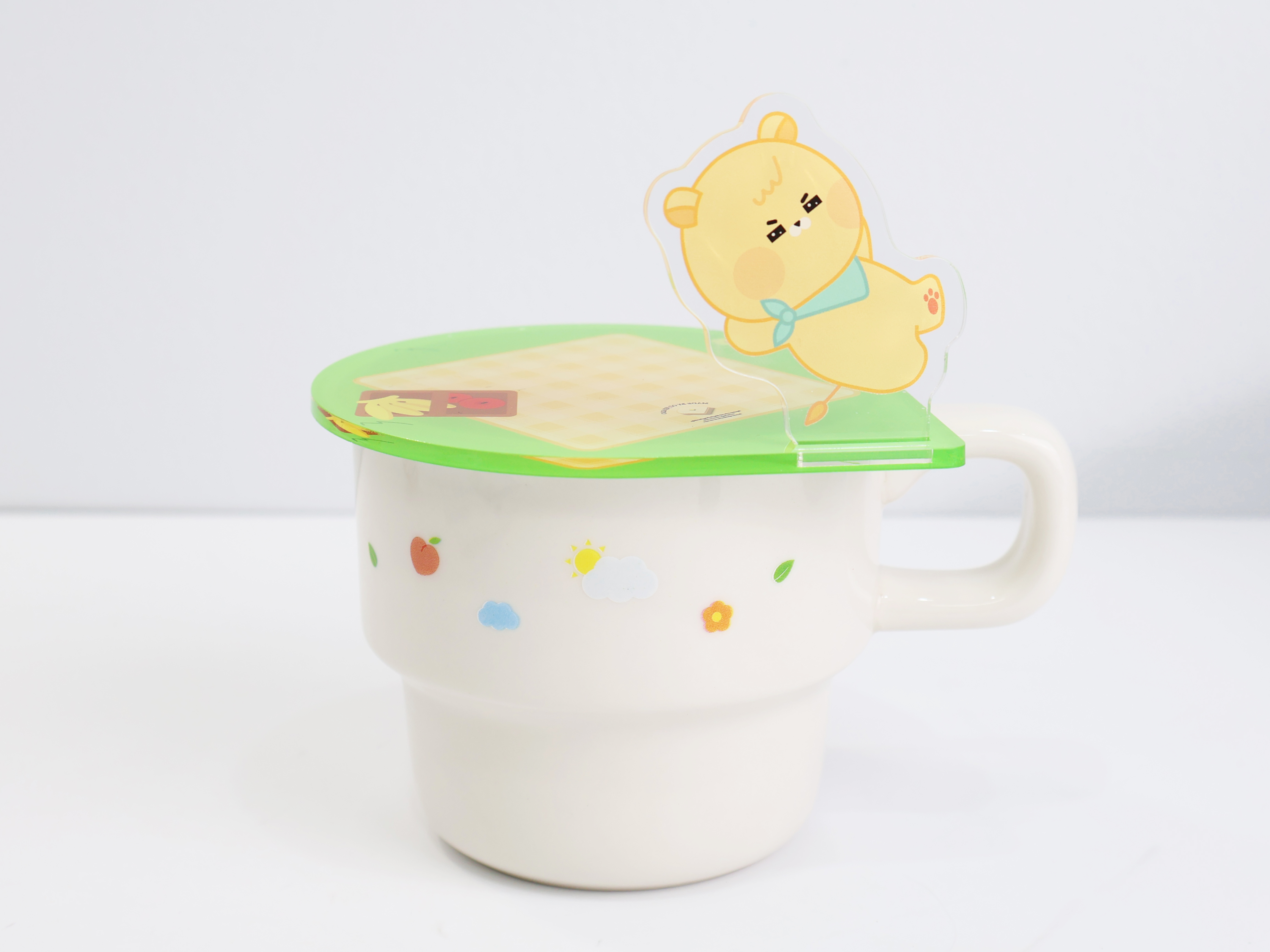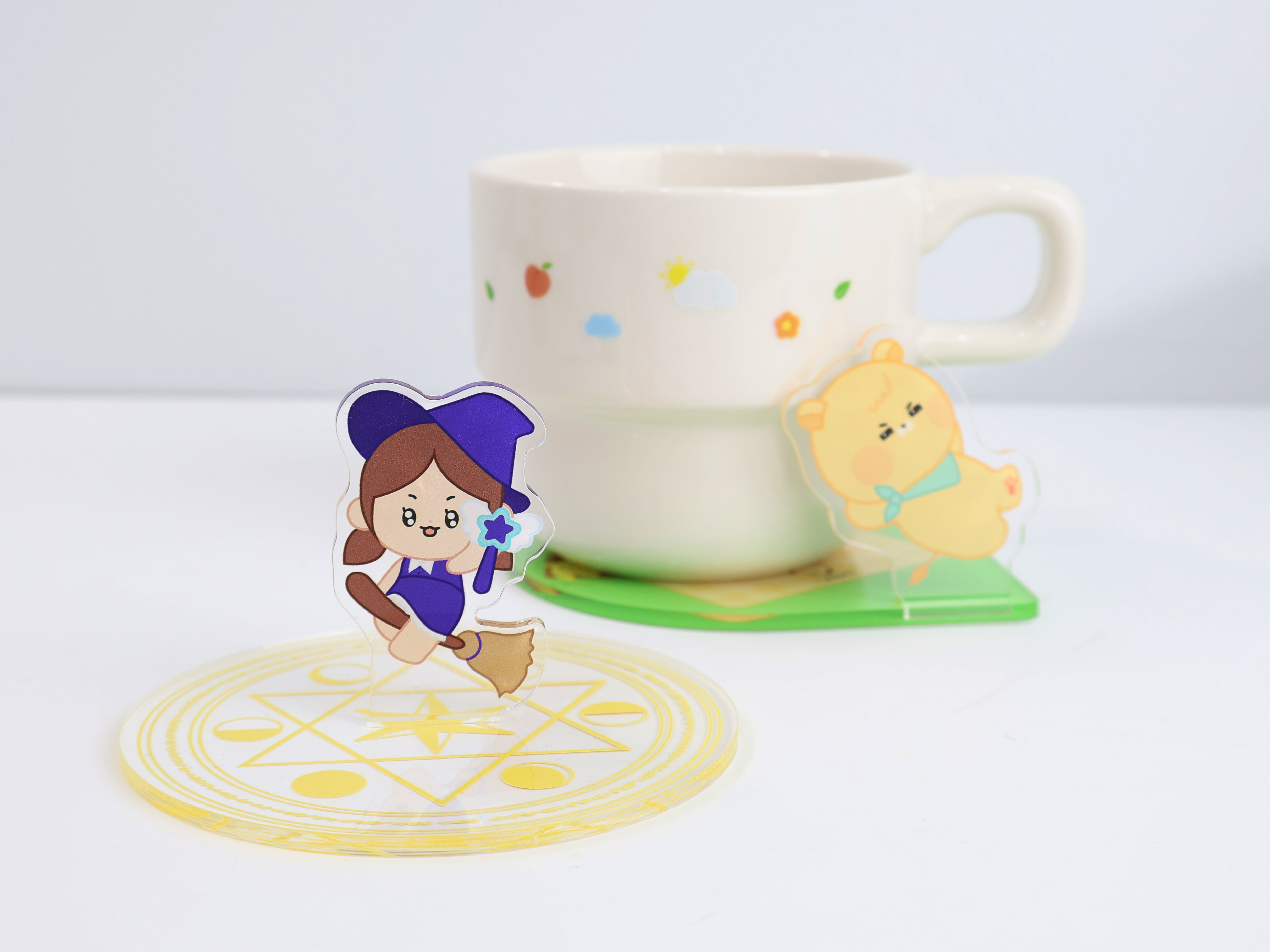 귀여운 캐릭터를 활용한 아크릴 누들 스토퍼에요 제작하는 방향에 따라 누들 스토퍼 혹은 컵 받침대로 다양하게 제작할 수 있어요