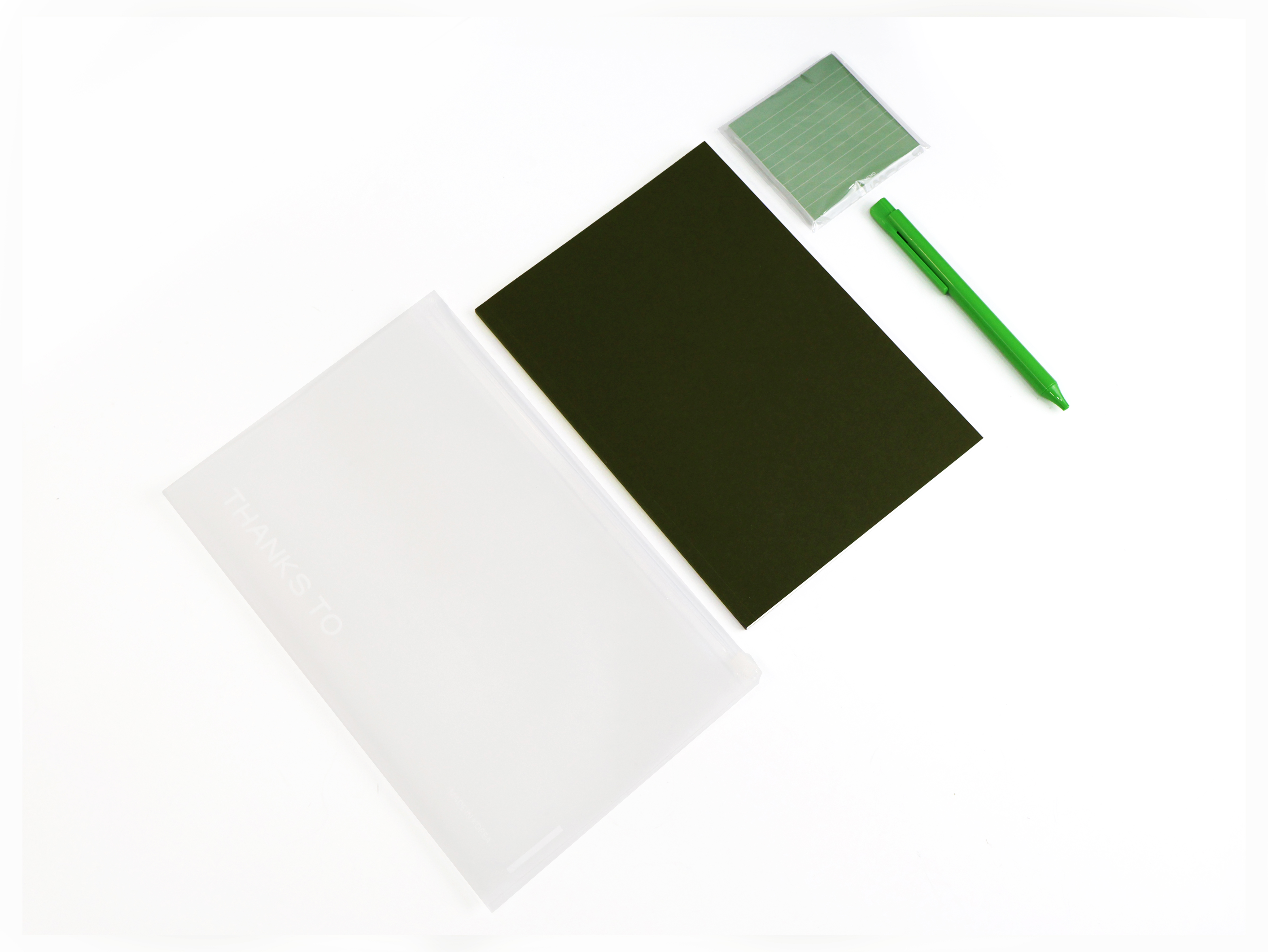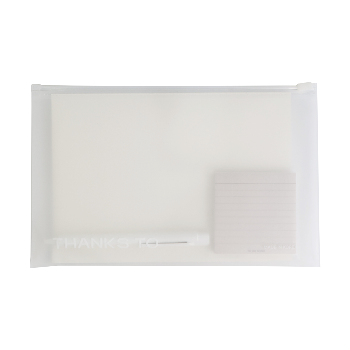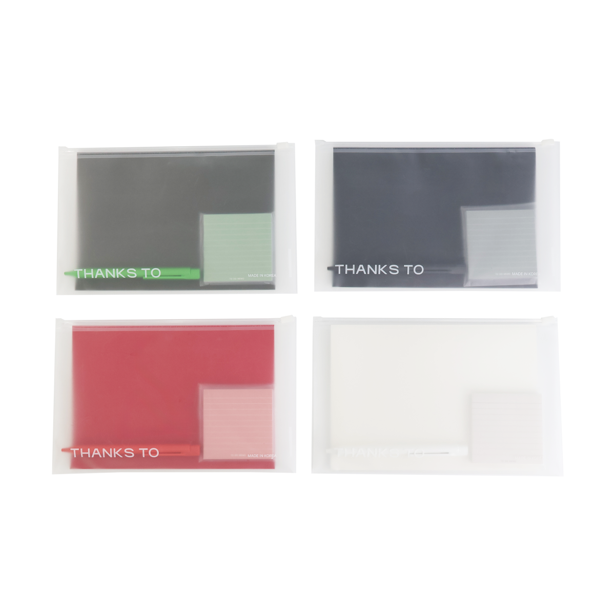파우치와 노트, 볼펜, 포스트잇이 한 구성으로 합쳐져 활용도가 좋은 클리어 스테이셔너리 세트에요