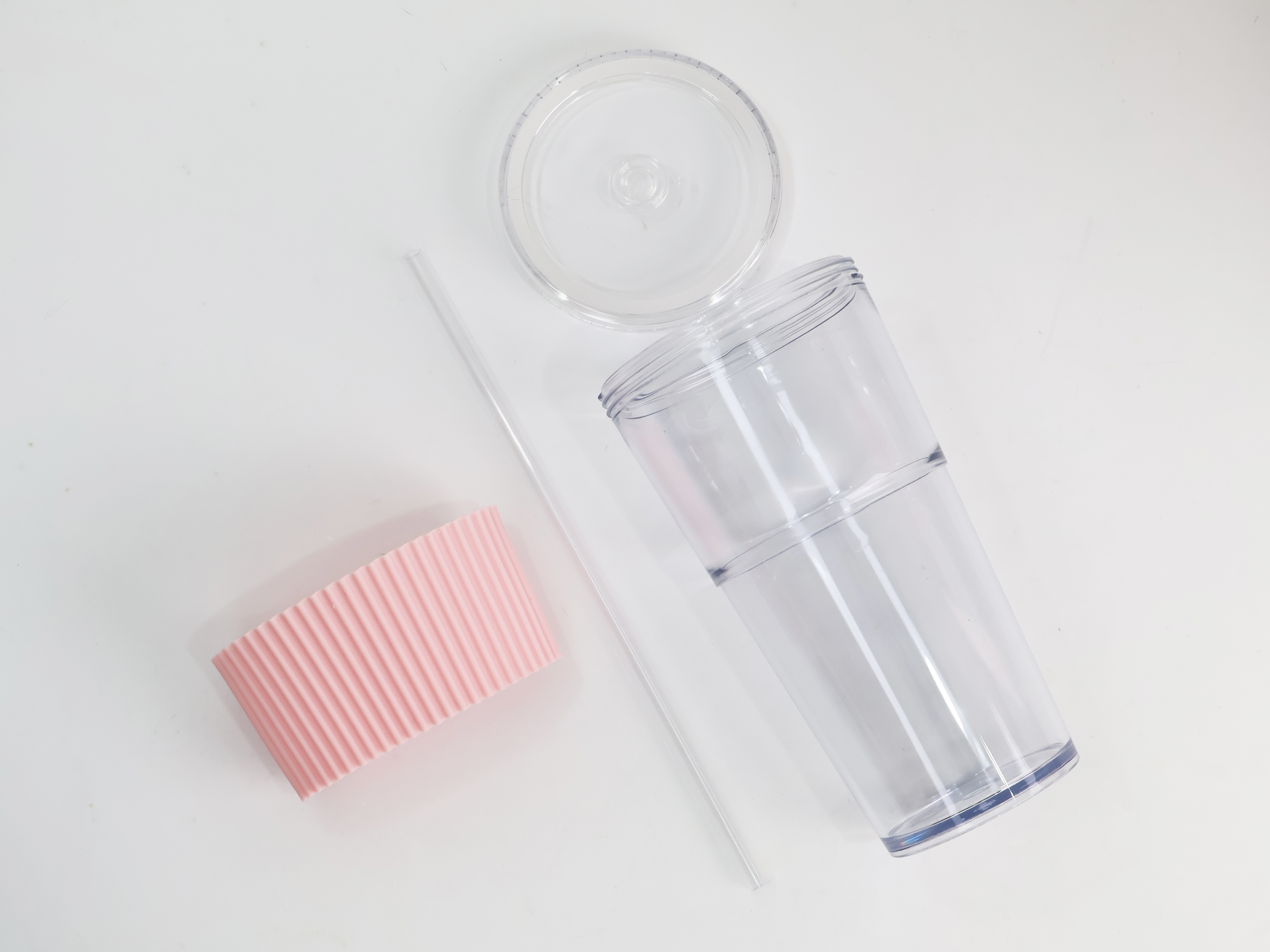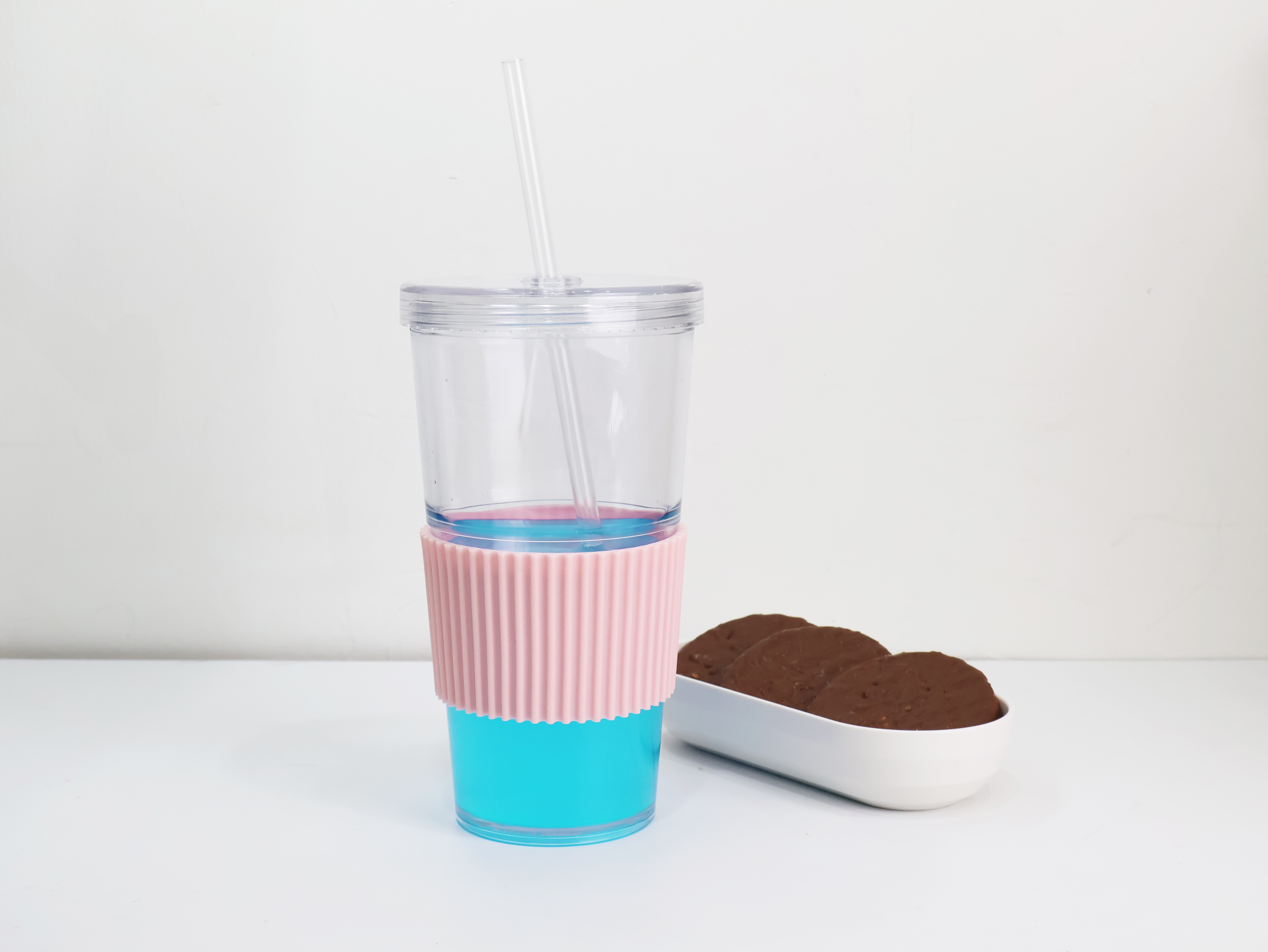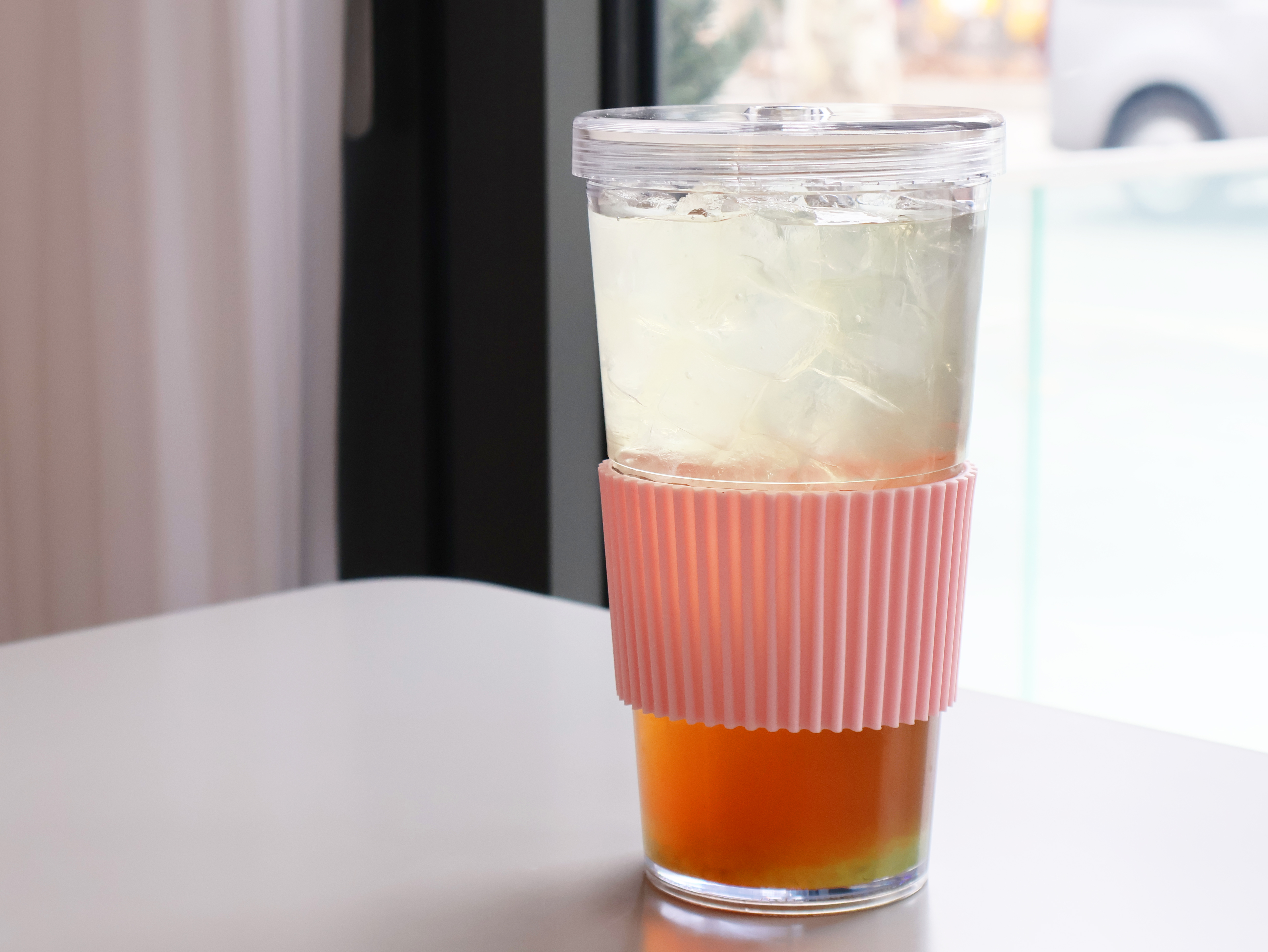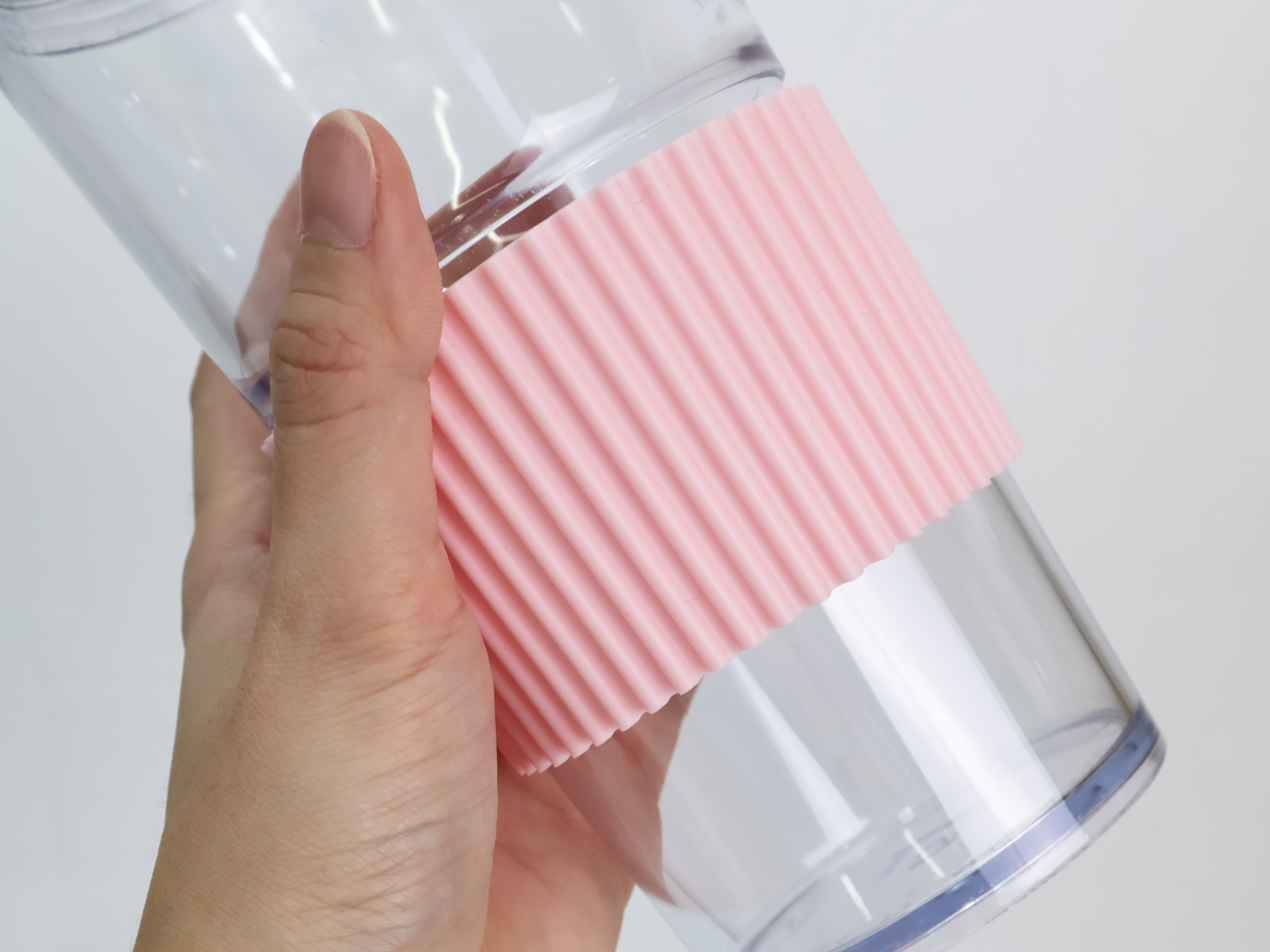 말랑한 실리콘 슬리브가 있어서 차가운 음료를 담아도 손시리지 않게 들 수 있어요