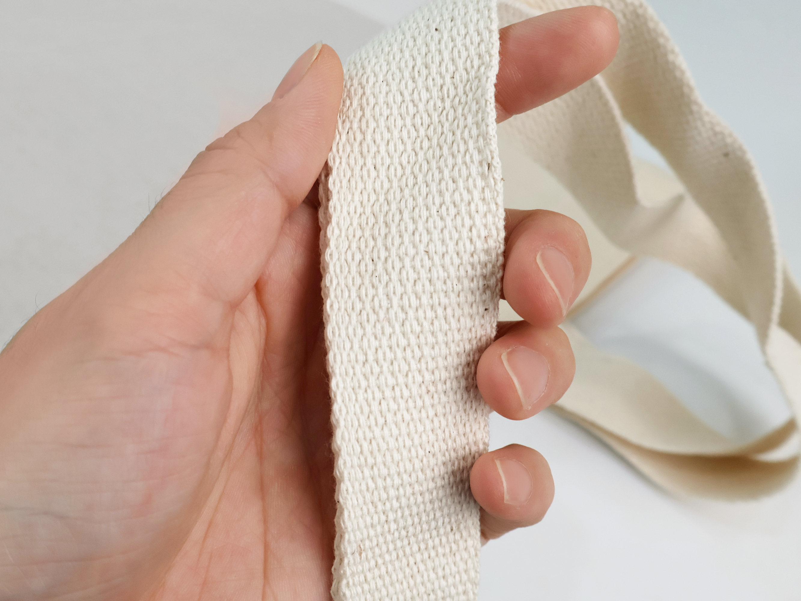 튼튼한 3cm 웨빙 손잡이를 이중 박음질로 부착해서 안정감 있게 사용할 수 있어요