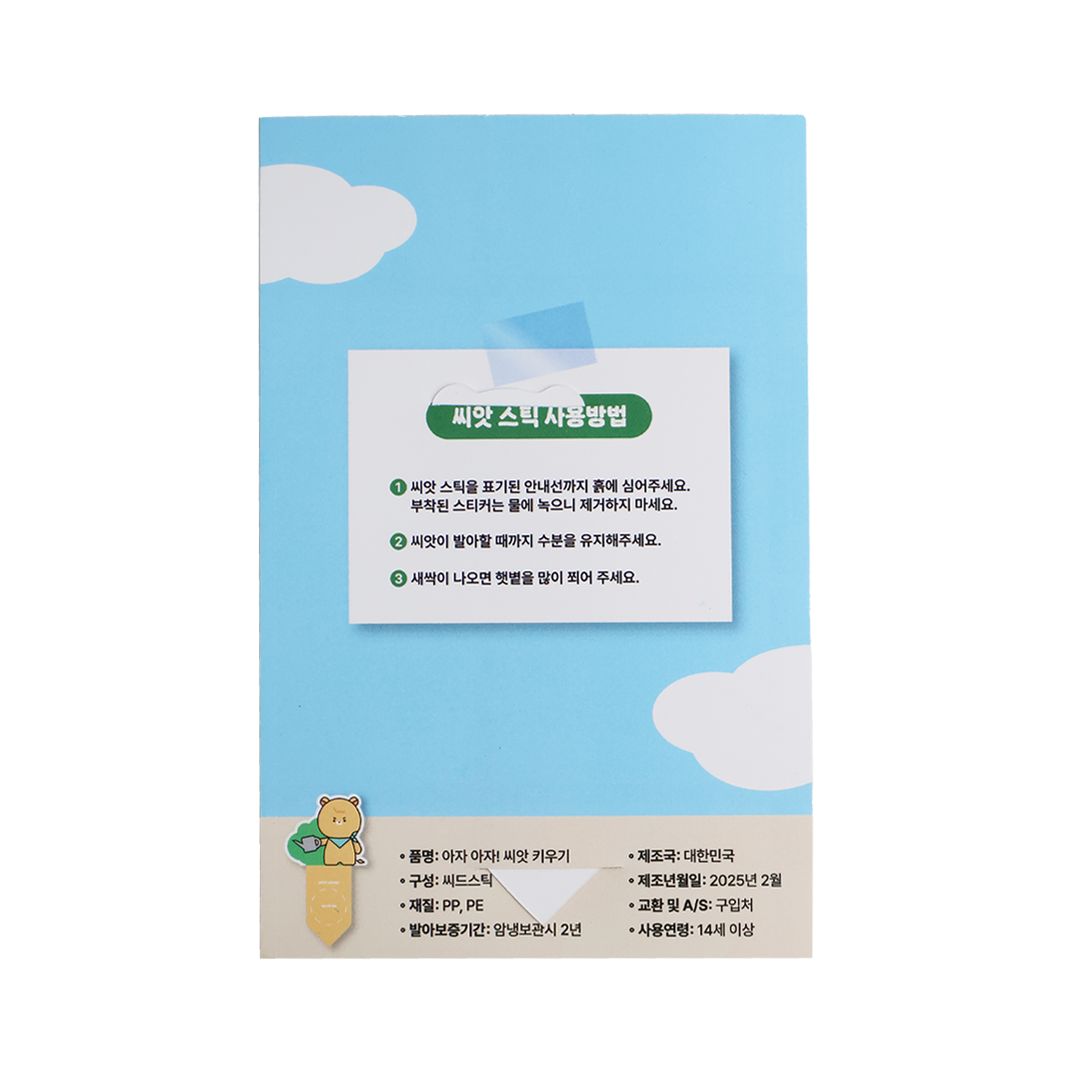 - 재질씨드 스틱: PP 씨드 부착 스티커: PE 뒷대지: 지류