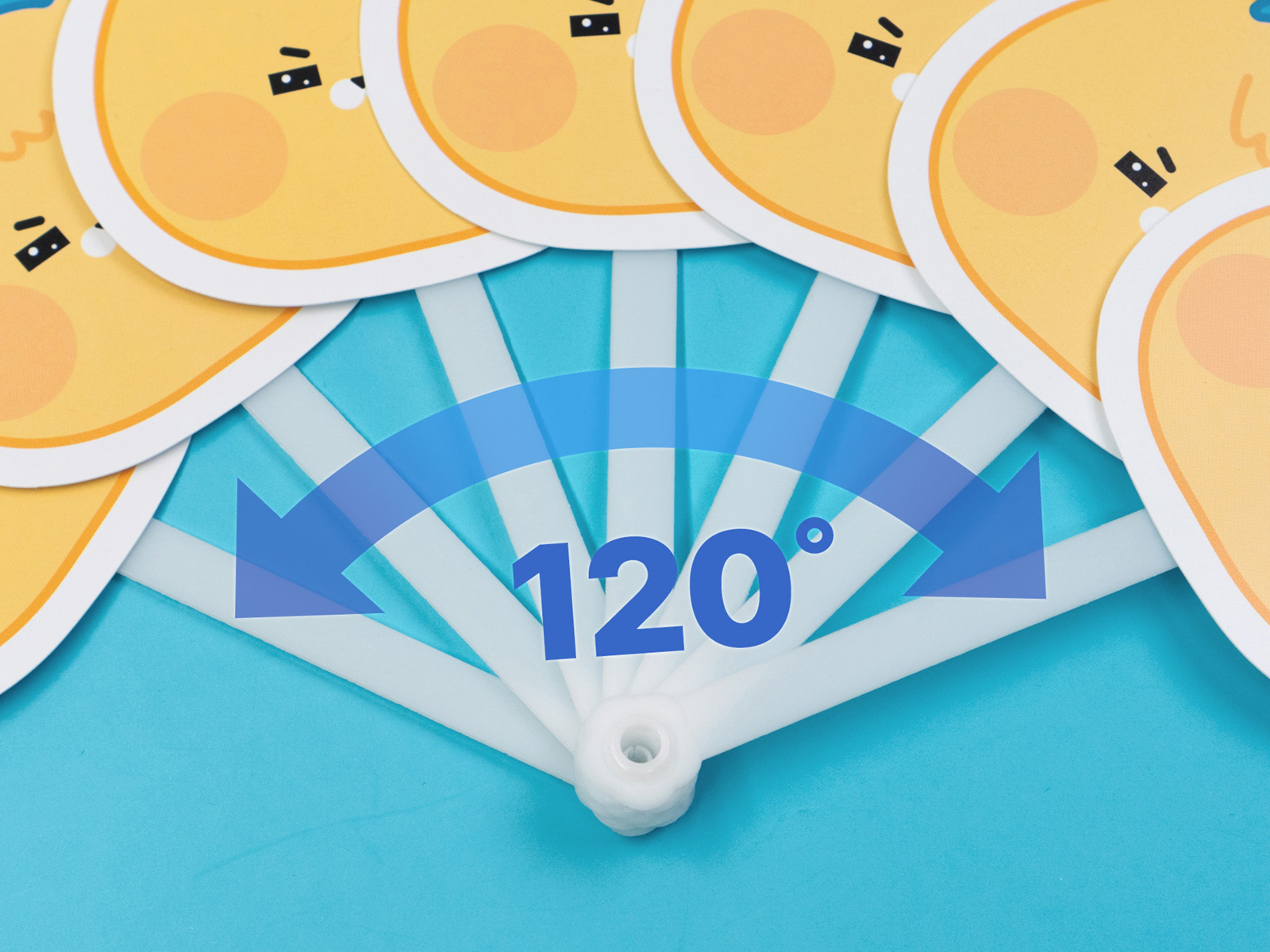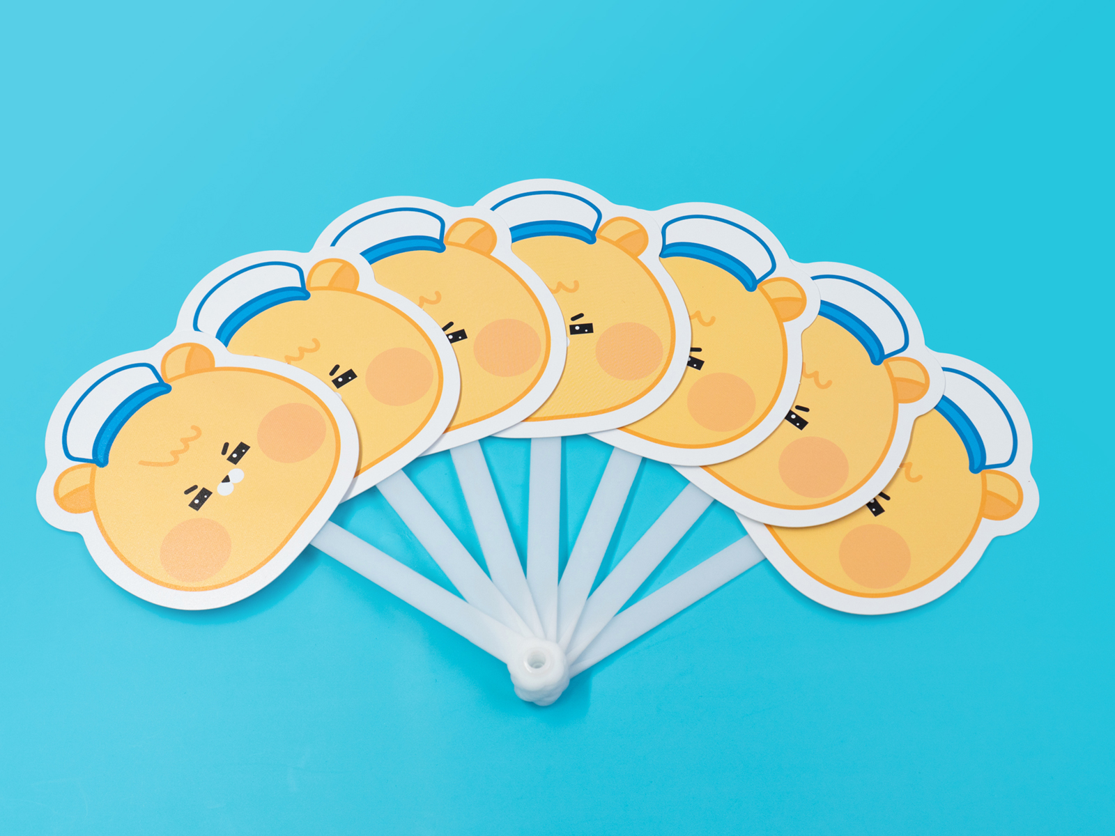 쉽게 펼쳐지는 화이트 자루로 시원한 여름을 보내게 해줄 여름 필수템 PP부채예요 점점 길어지는 여름, 브랜드 로고나 캐릭터를 넣으면 여름 내내 가지고 다닐 수 있어요