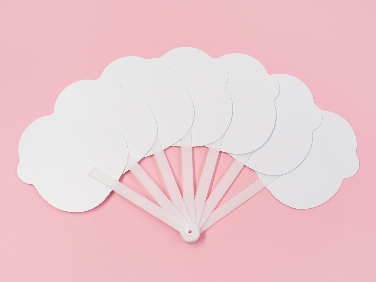 여름맞이 시원한 굿즈로 제격! 화이트 자루 접이식 PP부채예요