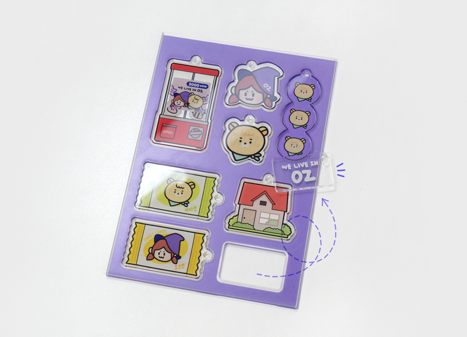 아크릴 한판에 내가 원하는 키링을 여러 개 넣을 수 있는 DIY 커스텀 한판키링이에요
