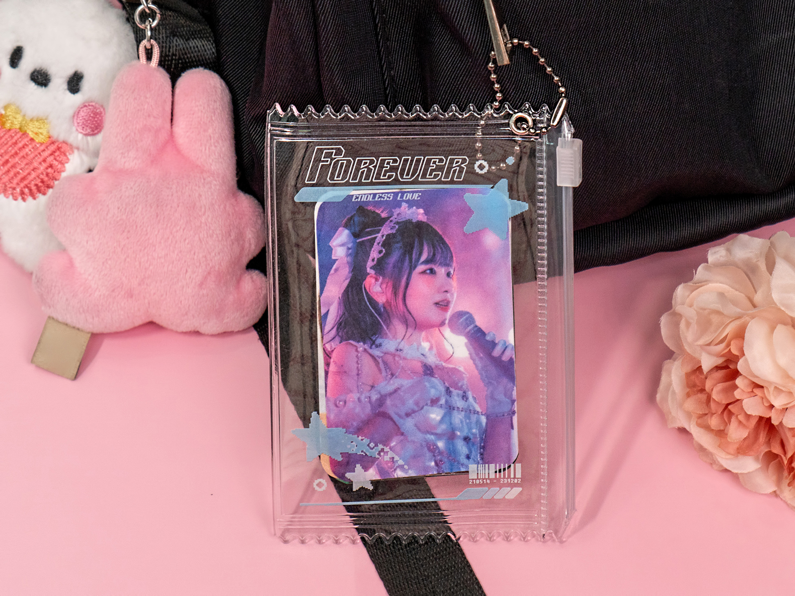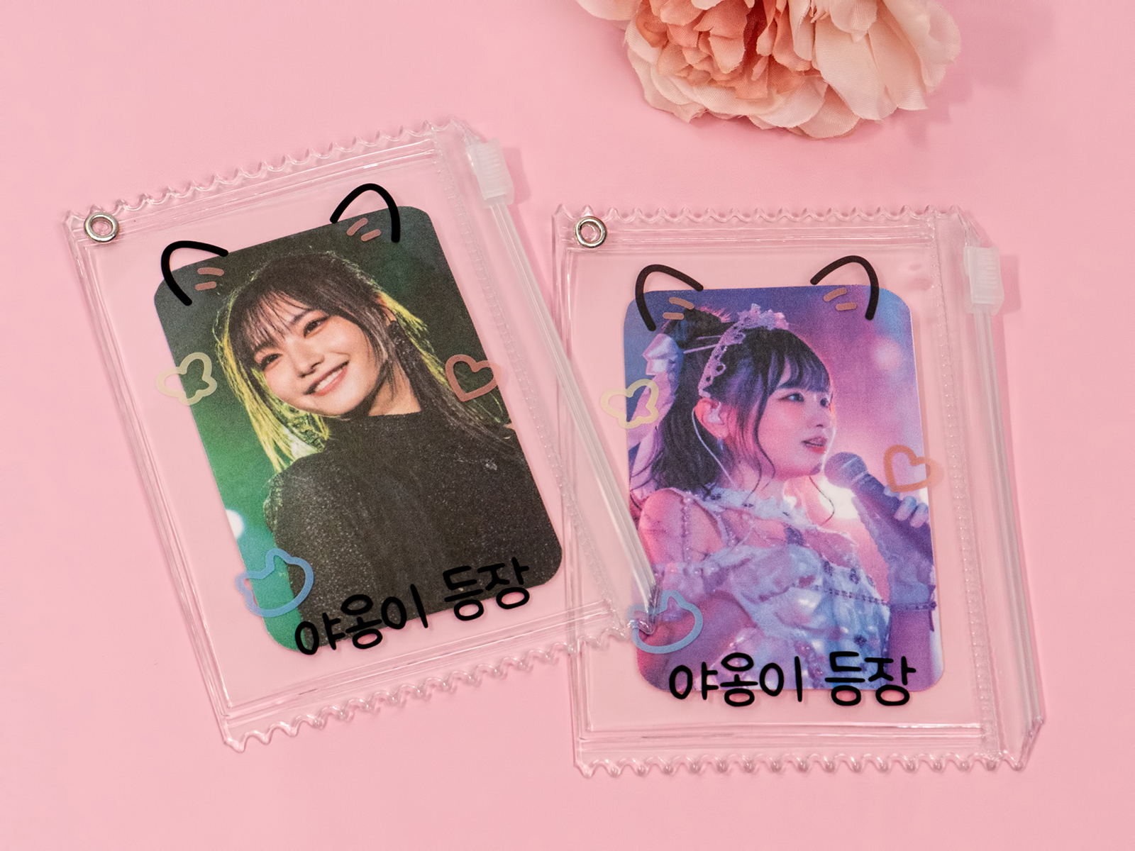포카를 여러 장 담아두었다 기분에 따라 내가 원하는 포카를 넣을 수 있는 투명청량 지퍼형 포카홀더예요 *사진에 사용된 포토카드 사이즈는 55 x 85 mm입니다