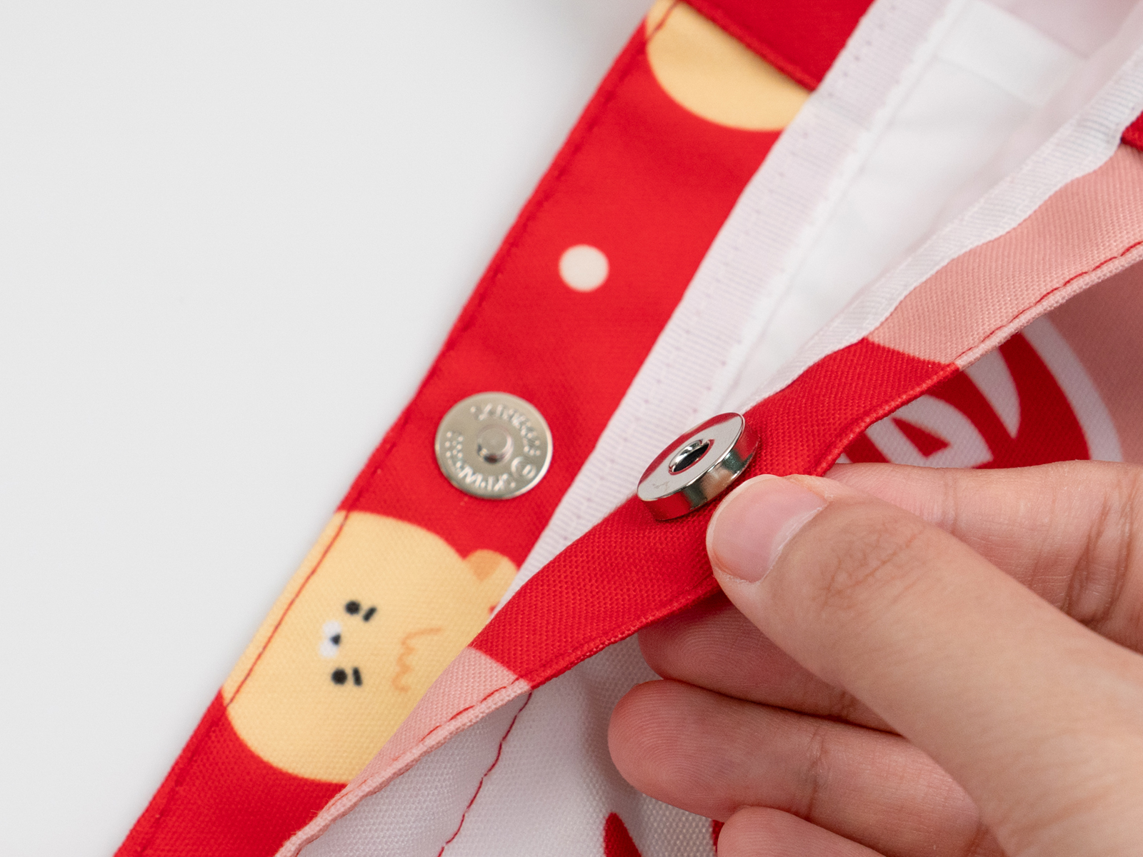 자석 단추가 달려있어서 가방을 떨어뜨려도 소지품을 흘릴 걱정이 없어요
