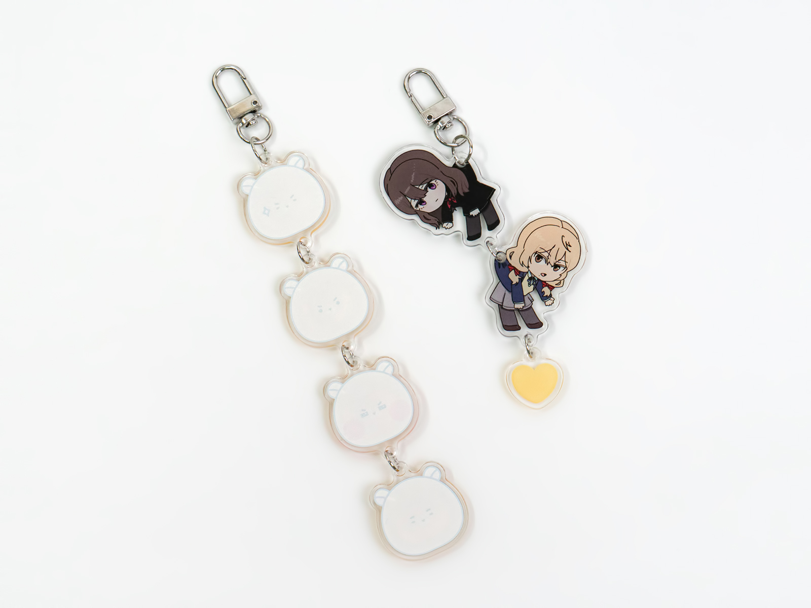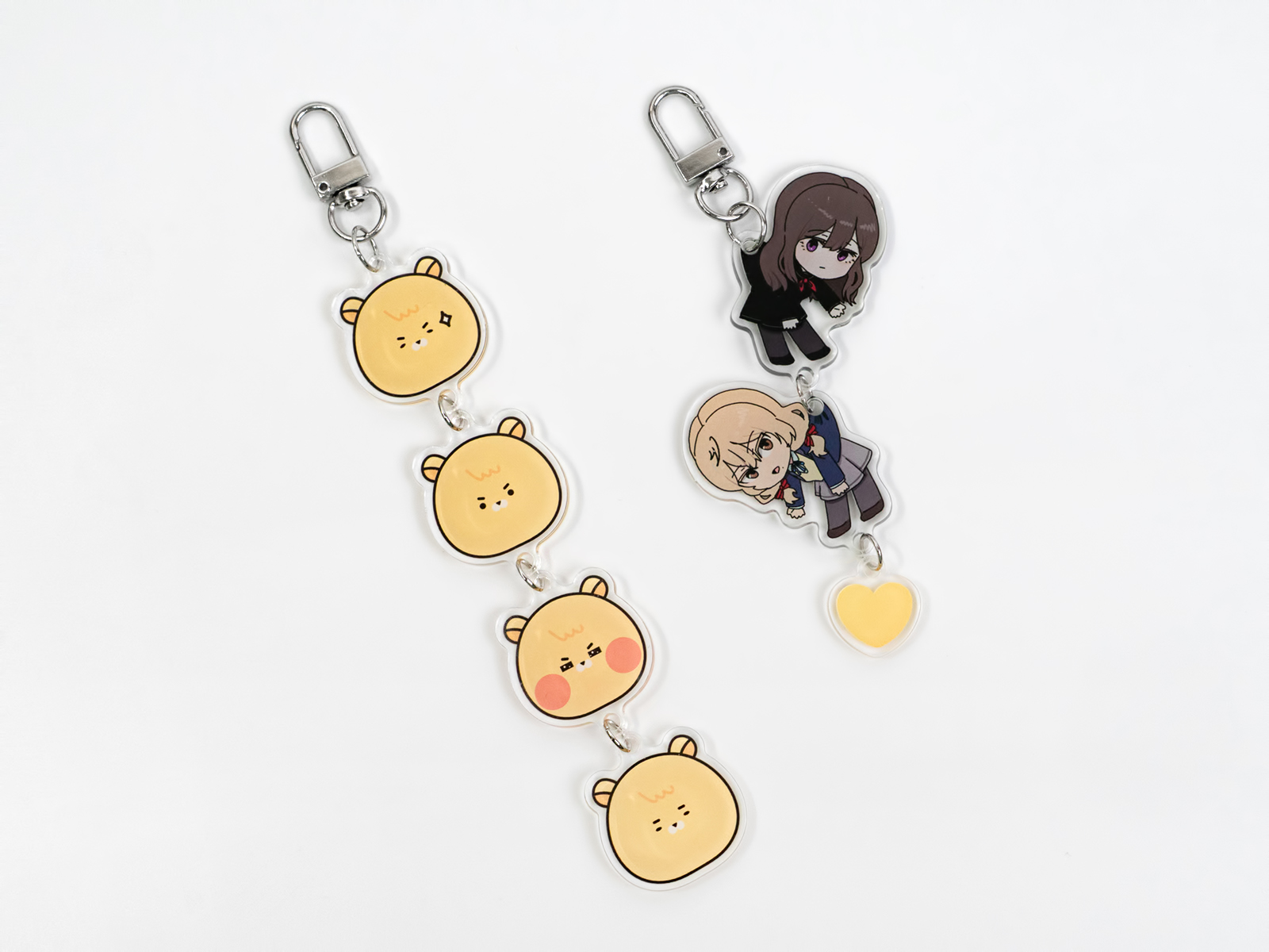 펜던트를 최대 4개까지 줄줄이 연결할 수 있는 아크릴 키링! 상황에 맞게 마음껏 조합해 나만의 스타일을 만들어 보세요
