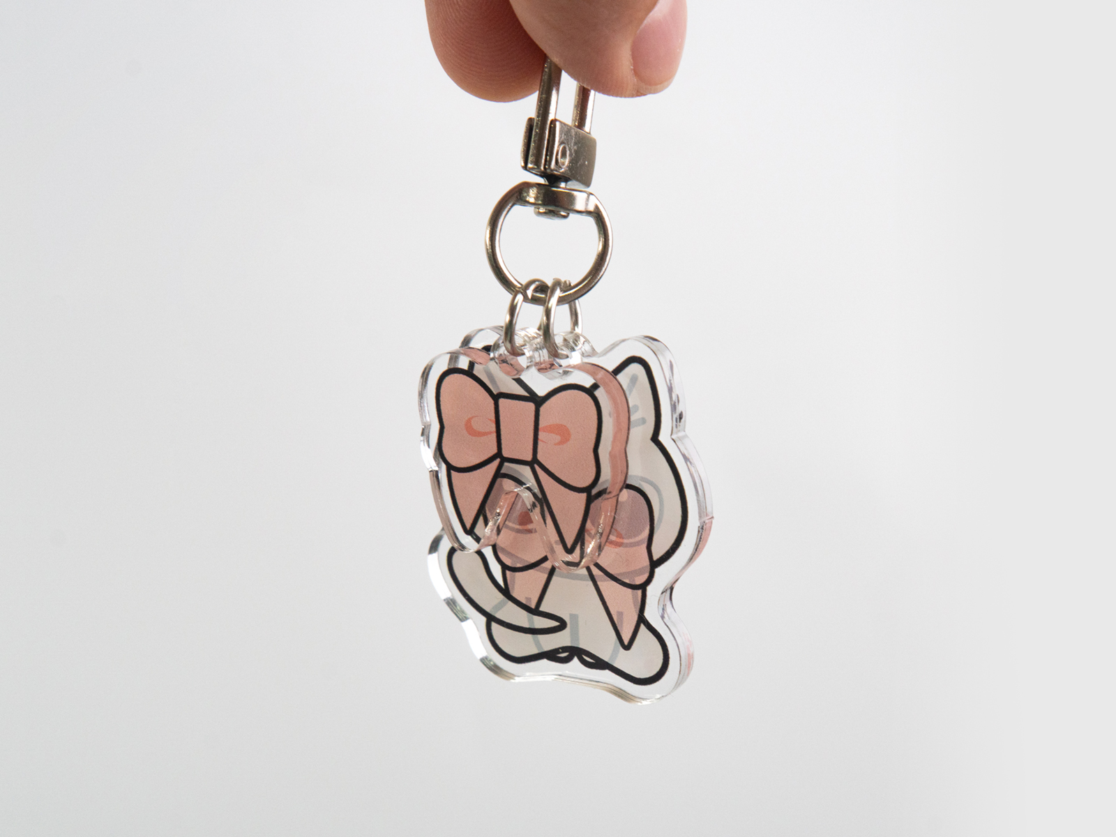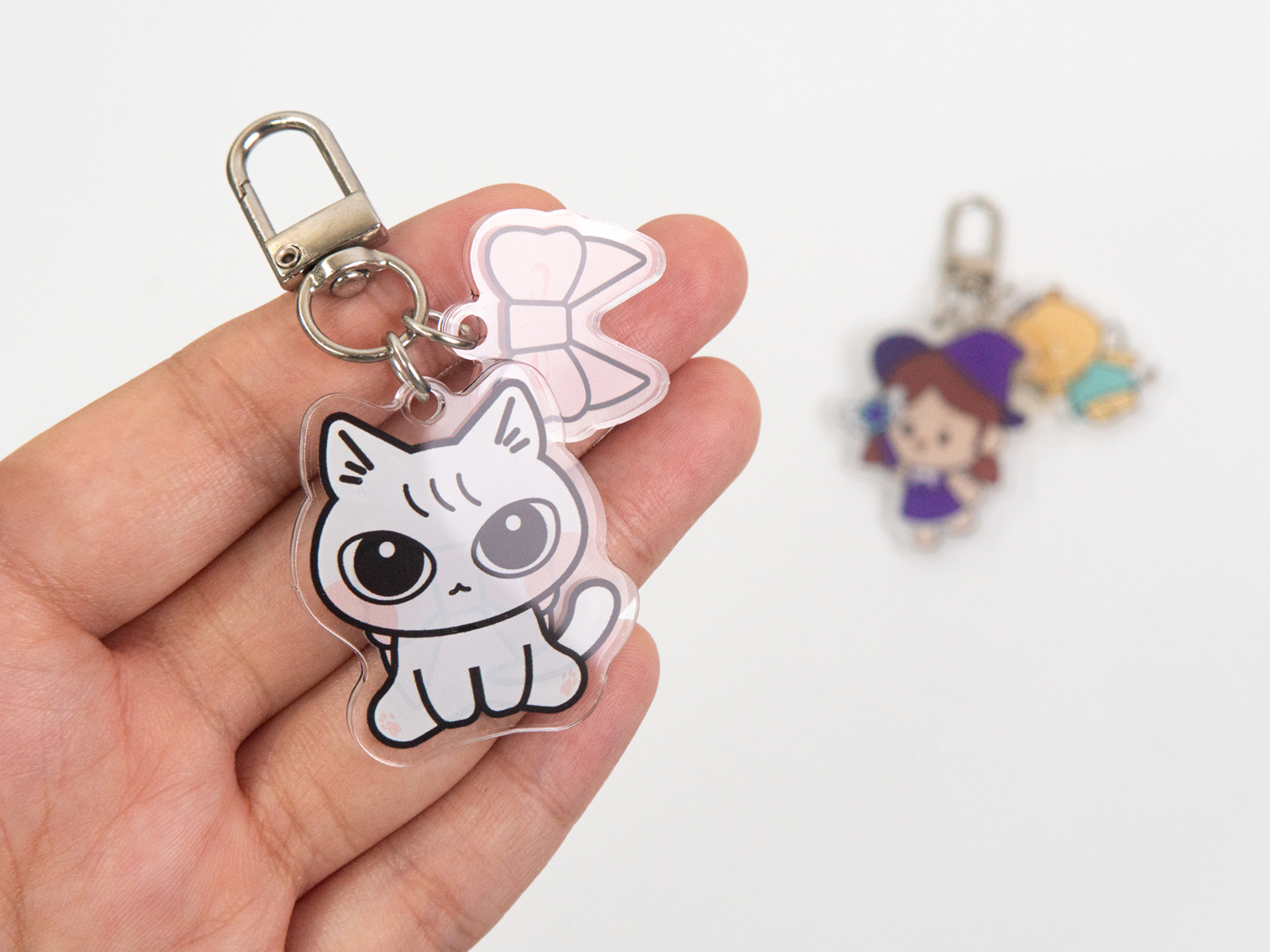 아크릴 키링에 팬던트가 여러개 연결된 키링이에요 가성비 단면과 라미 제작 방식 중 선택할 수 있어요