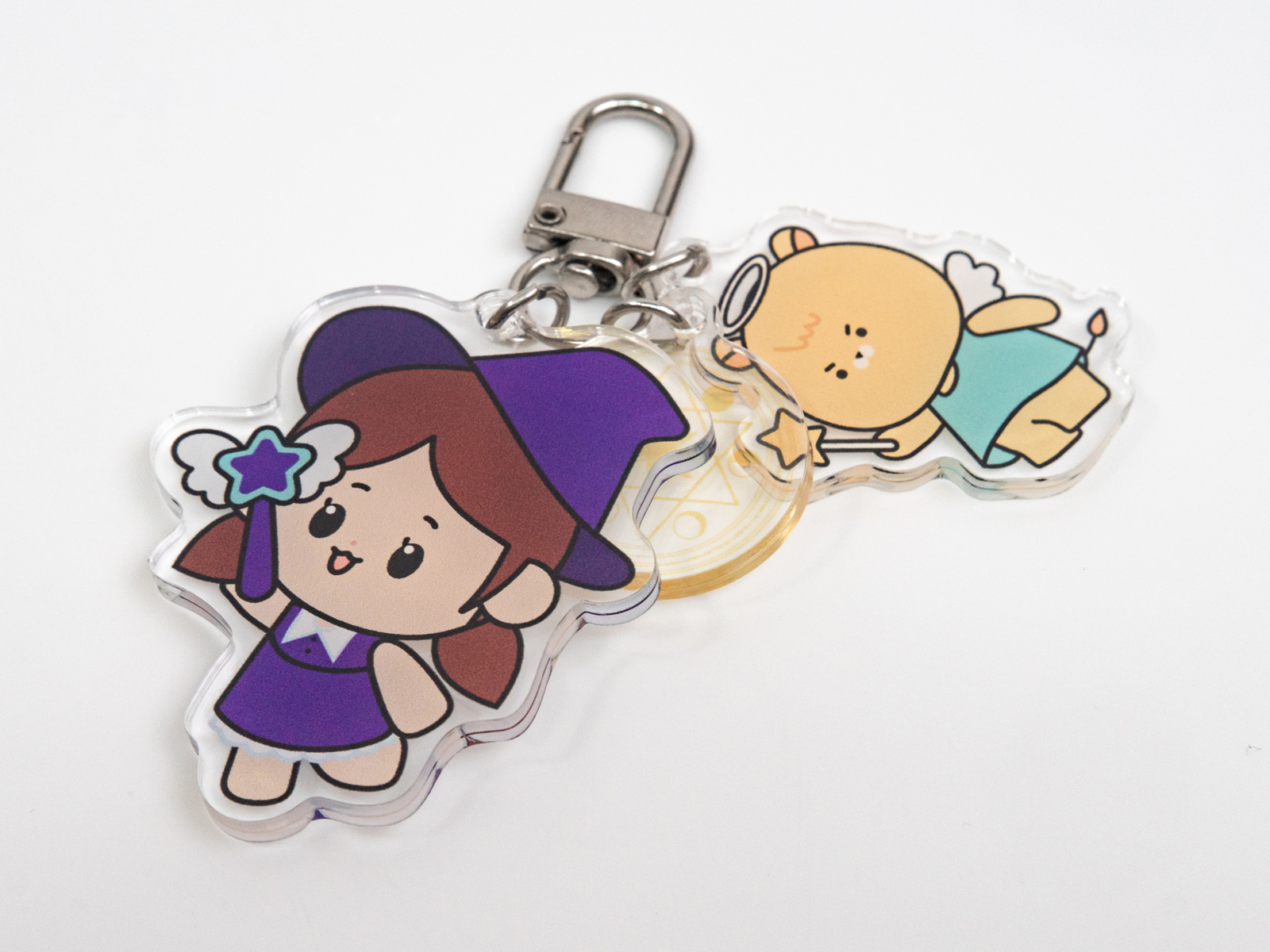 아크릴 팬던트를 2~3개 넣을 수 있는 키링이에요