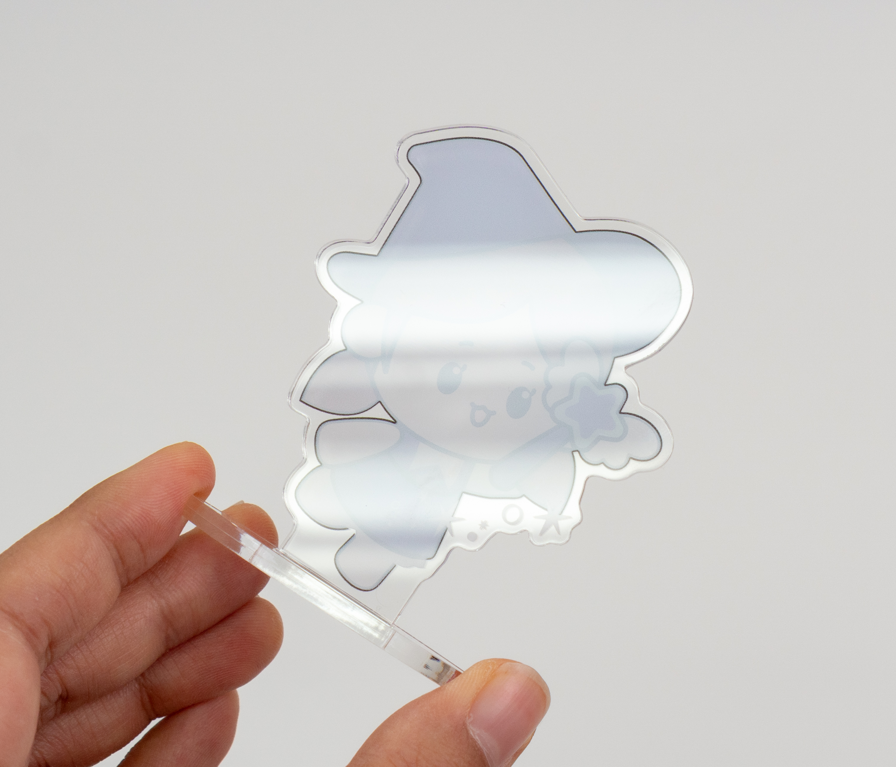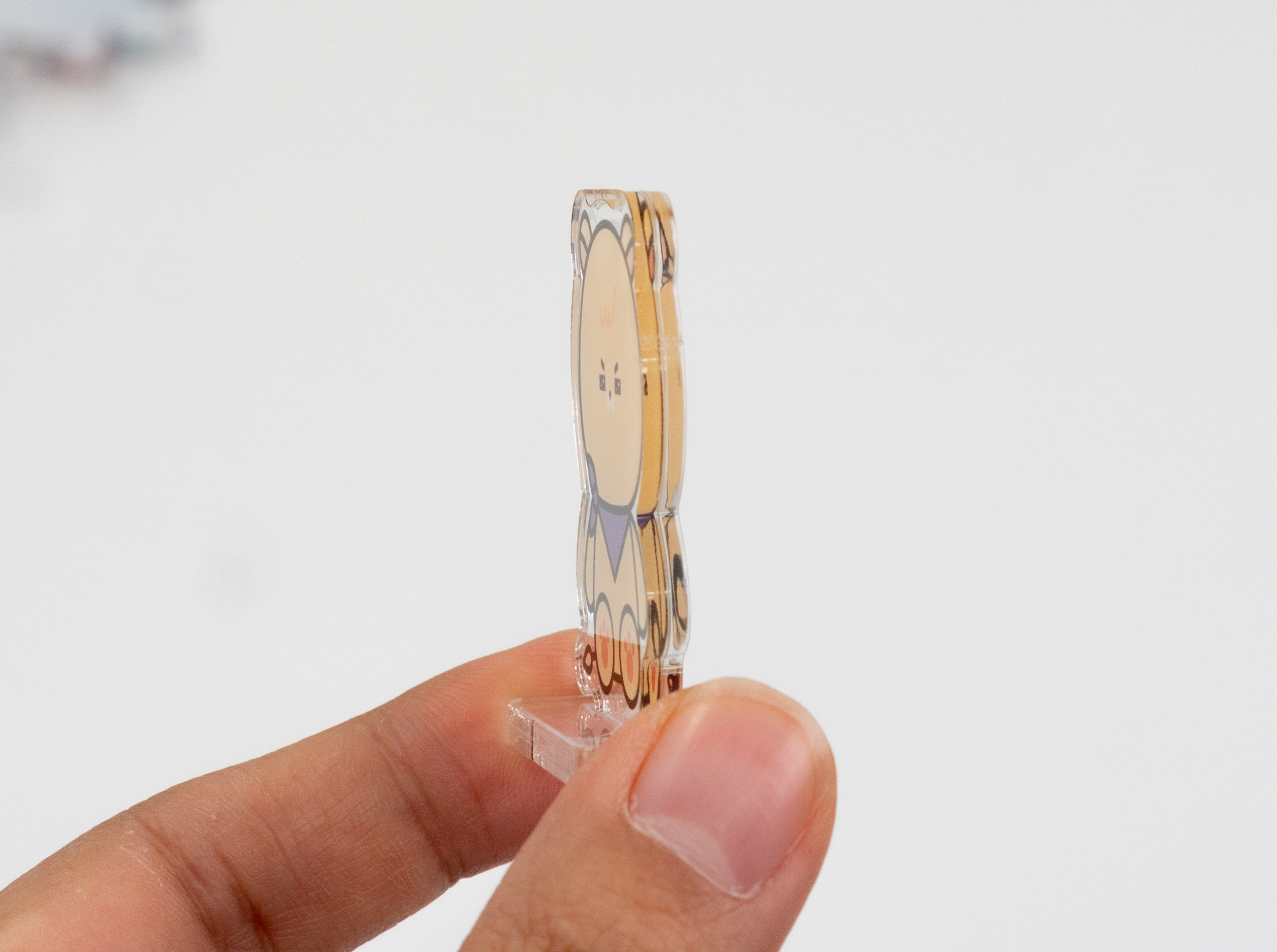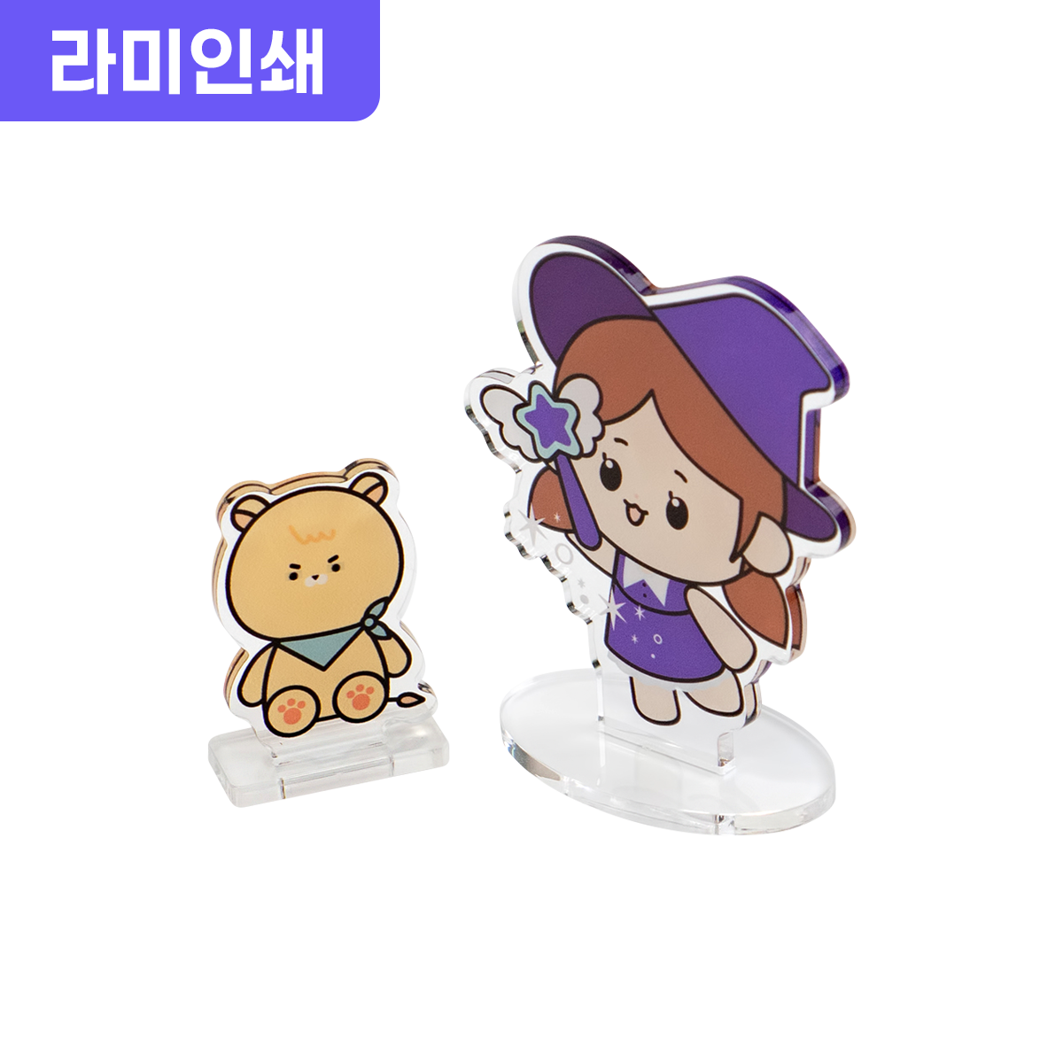 아크릴 굿즈를 만든다면 아크릴 스탠드가 빠질 수 없죠! 아크릴에 배면으로 인쇄해 투명하게 빛나는 스탠드를 만나 보세요